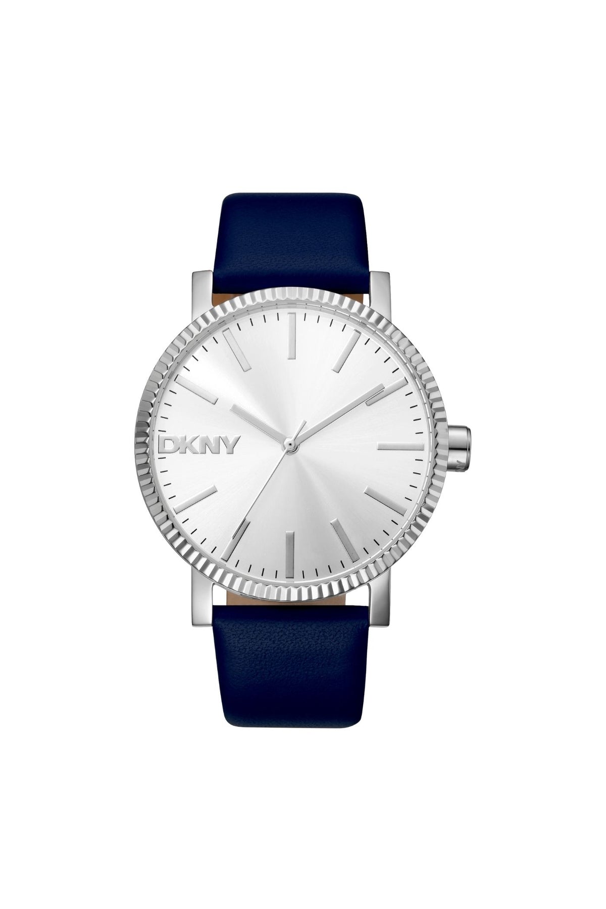 Urban Stainless Steel Case & Silver Dial Watch With Navy Leather Strap - Navy