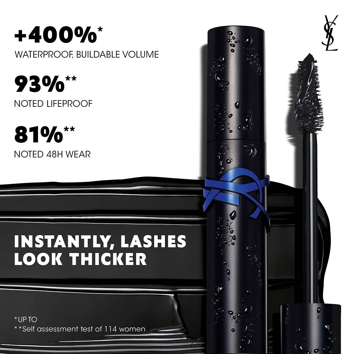 Waterproof, heat-proof, sweat-proof. Finally a life-proof couture mascara that delivers up to +400% extreme buildable volume thanks to its oversized double conical brush.