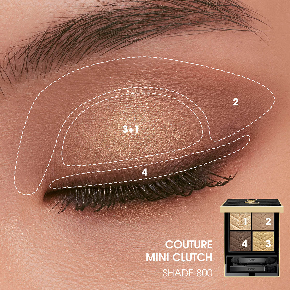 Like a mini clutch bag, framed in gold, it’s the perfect size for your eyeshadow looks. Precious enough to take with you everywhere; compact enough to never leave behind.