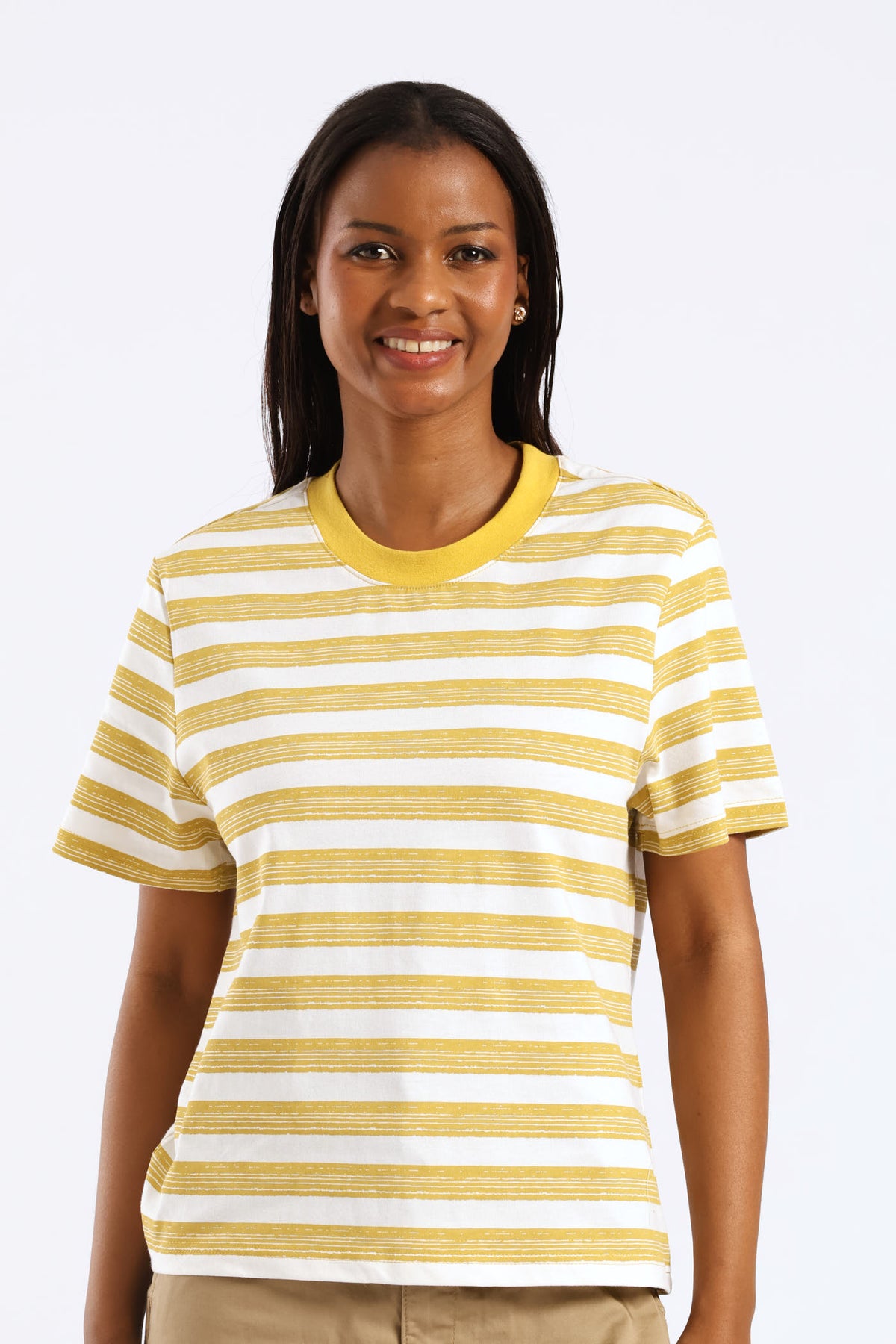 Artistic Stripe Print Boxy Tee - White/Ochre