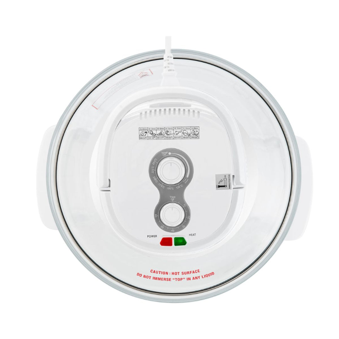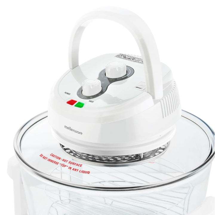 Mellerware Turbo Cook Air Fryer has a powerful heating element with an incorporated fan inside the glass lid which combined with its large 12L glass body, allows you to cook faster and more evenly than most convectional ovens and deep fryers.