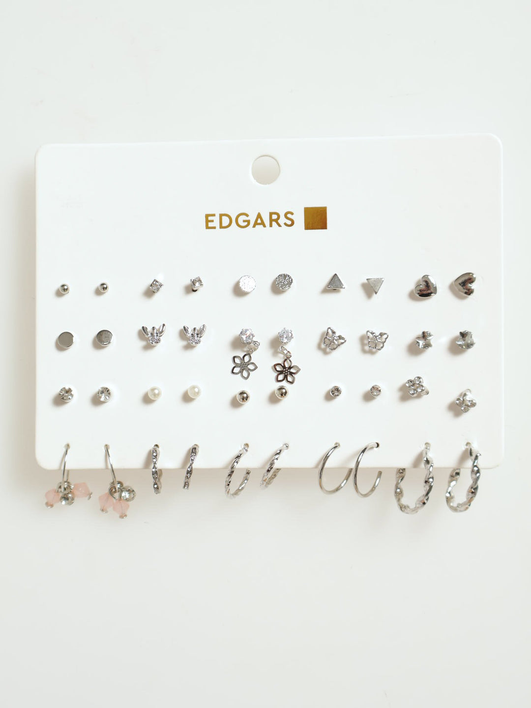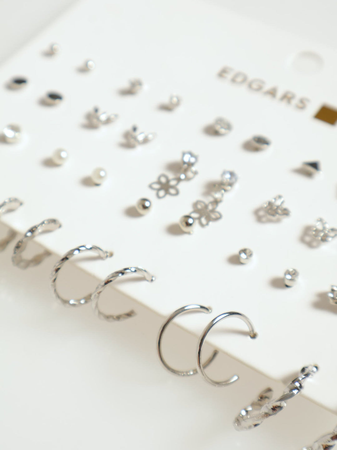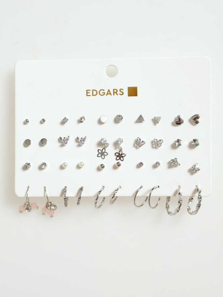 20 Pack Diamante, Flower & Hoop Earrings - Silver