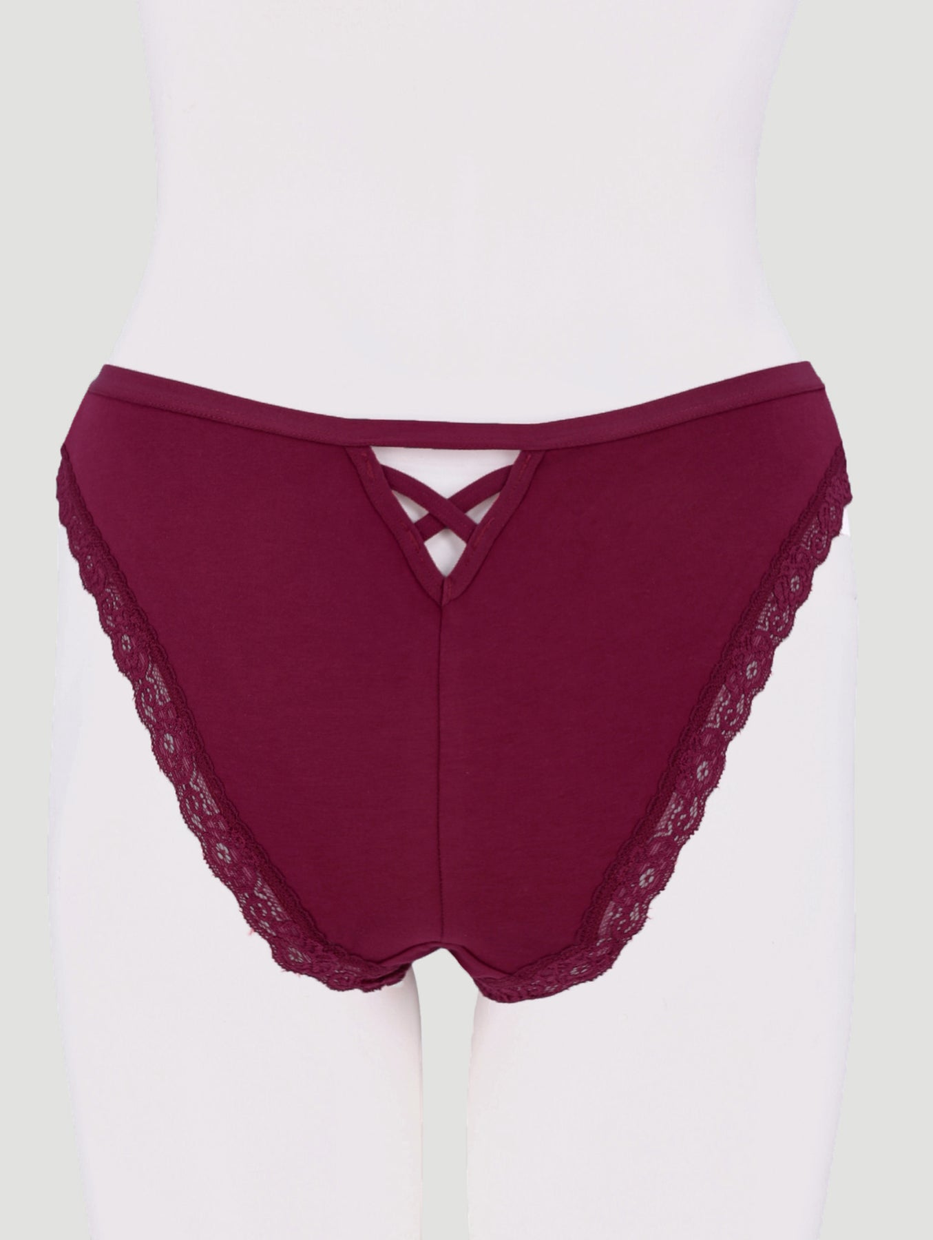 3 Pack Cotton Stretch Brazillian Panties - Burgundy/Light Pink/Coral