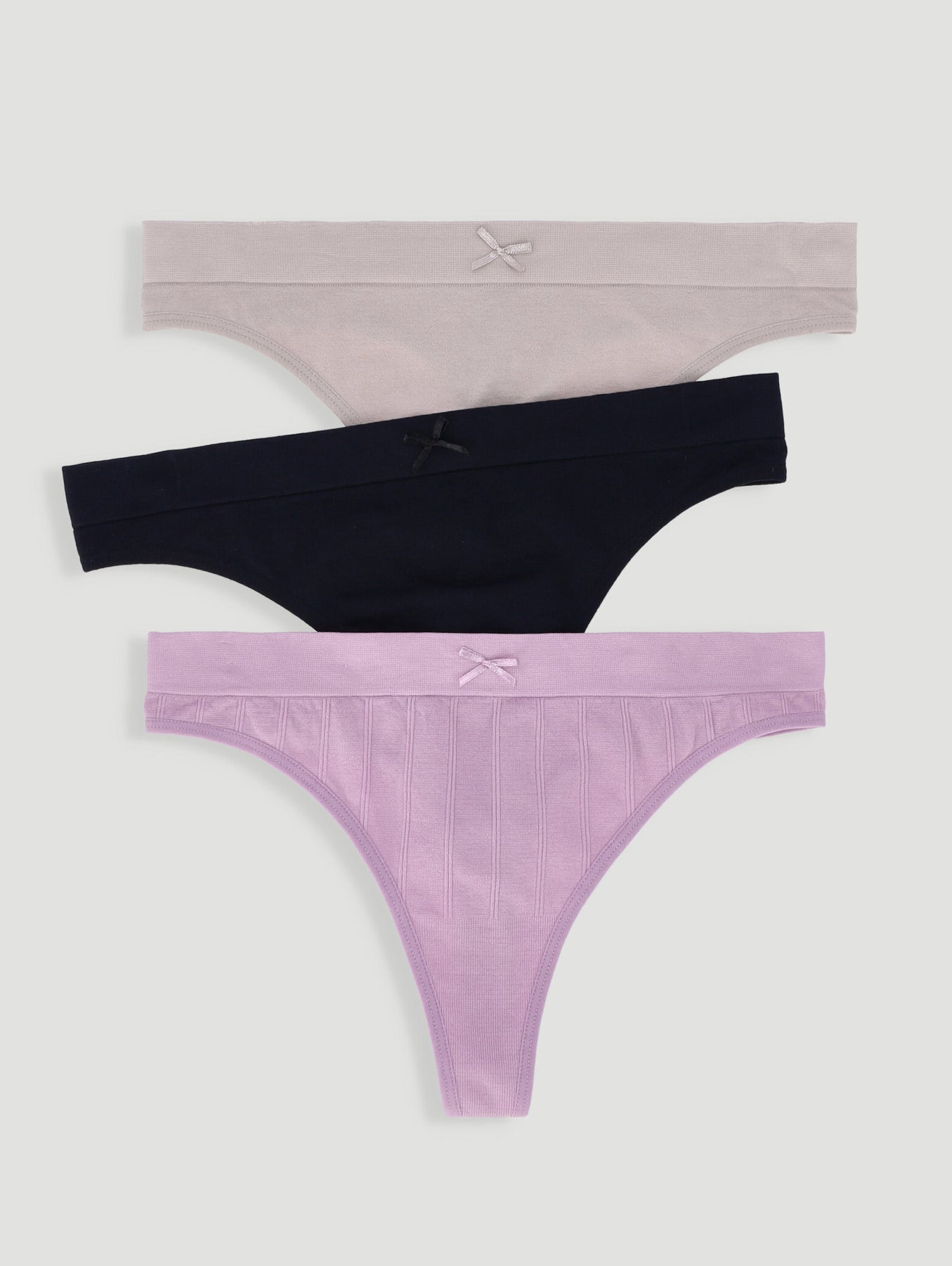 3 Pack Seamless Thong Panties - Lavender/Goat/Black