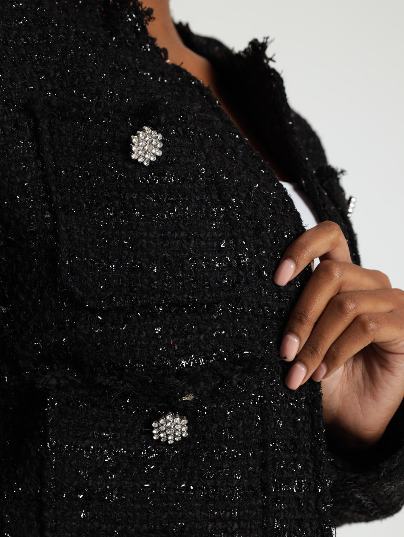 4 Pocket Sparkle Tweed Jacket - Black