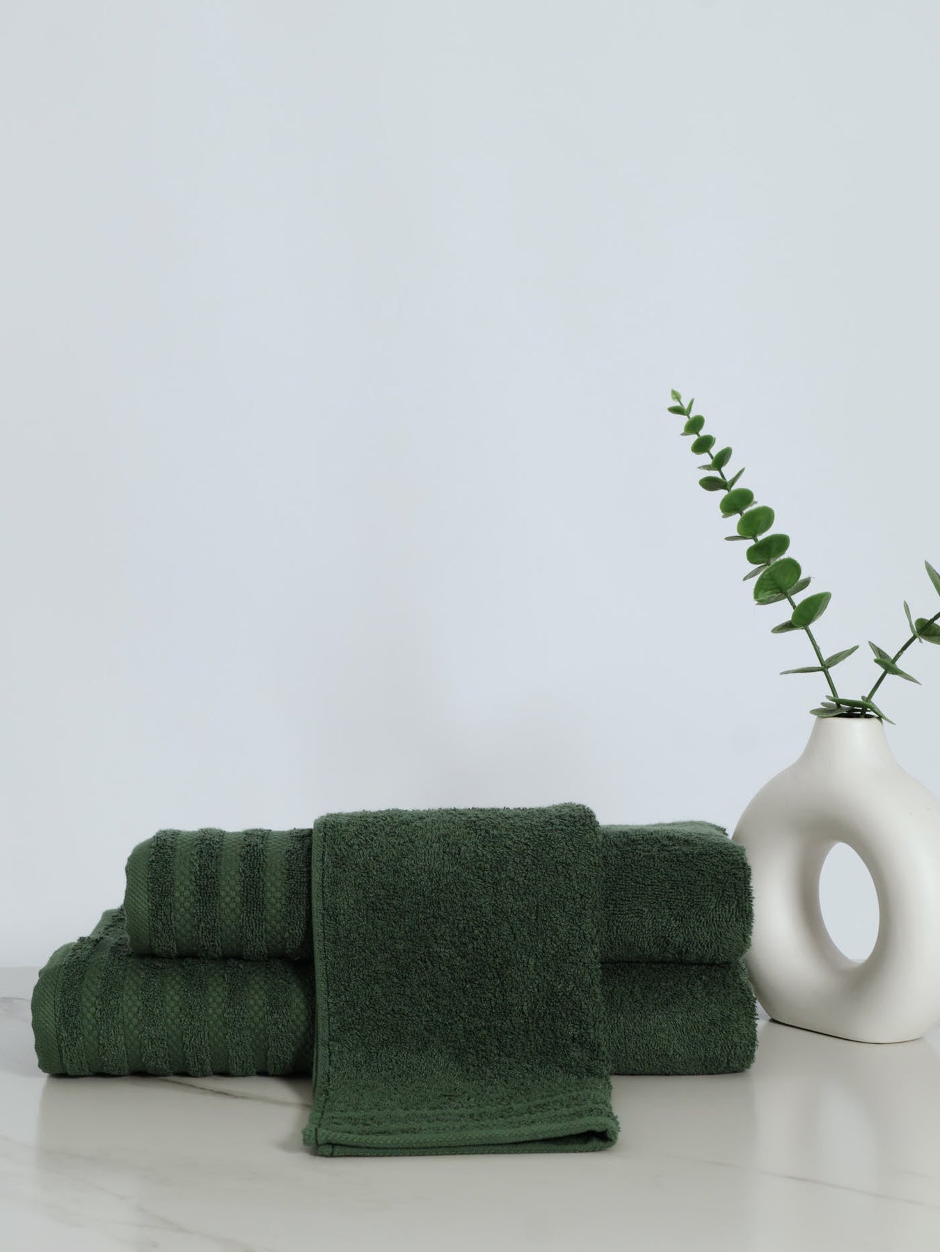 Expertly crafted 450GSM Ripple Flow Bath Towels in sophisticated Forest Green deliver superior absorbency and durability. The distinctive ripple texture enhances water absorption while providing a gentle massage effect on skin. These premium weight towels offer the perfect balance of plushness and quick-drying efficiency, maintaining their rich color and softness through repeated washing.