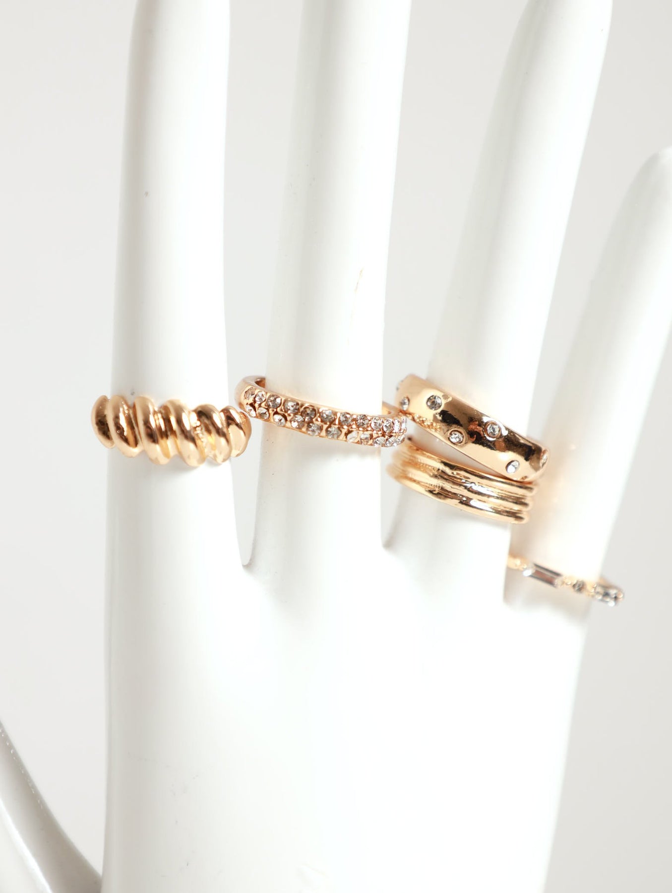 5 Pack Jewel Twist Rings - Gold
