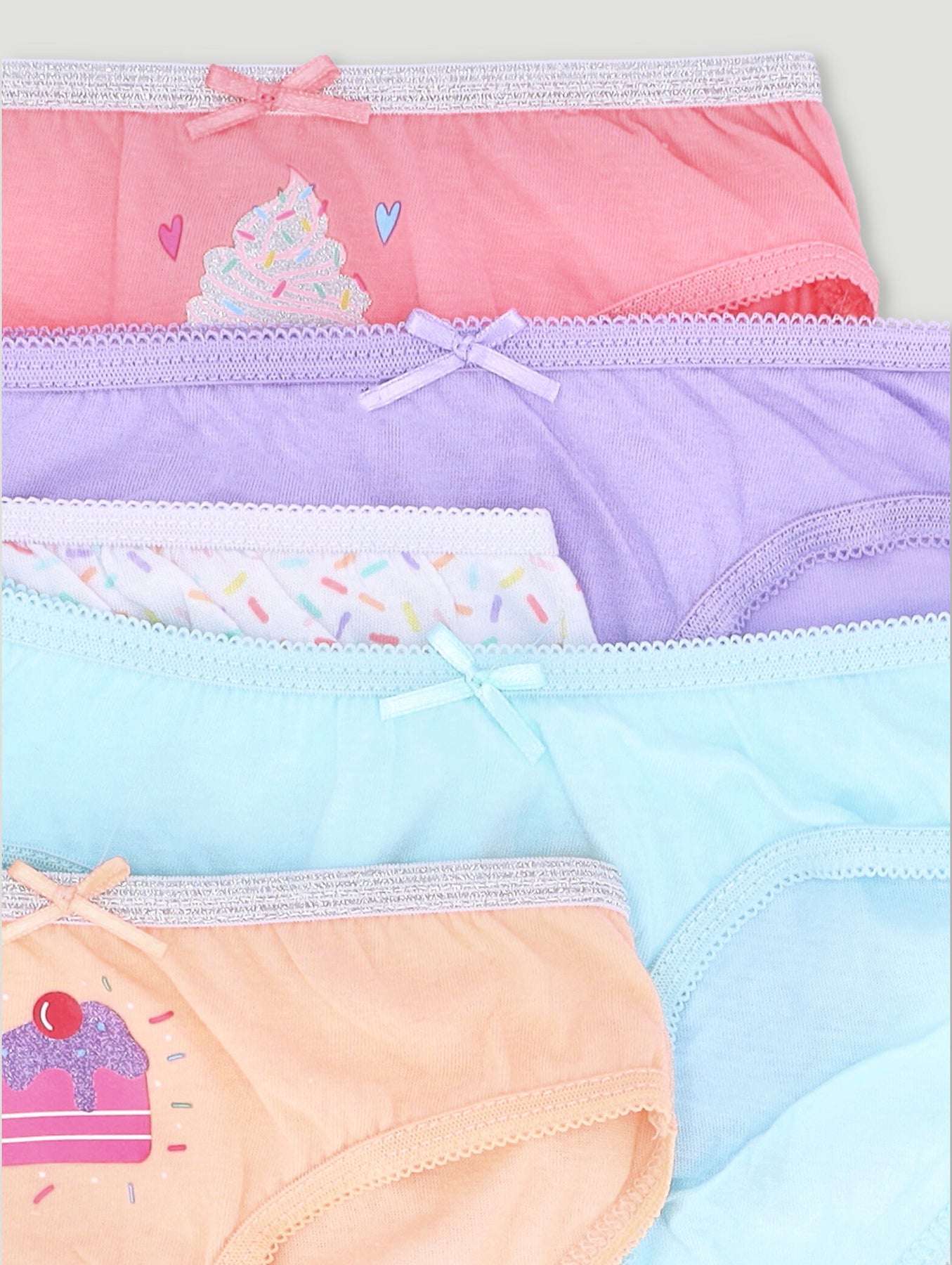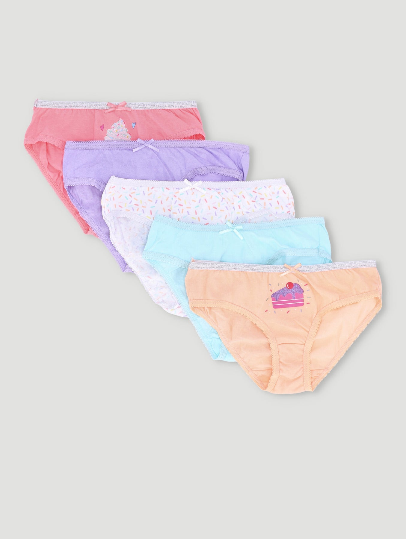 Pre-Girls 5 Pack Printed Tea Party Panties - Peach