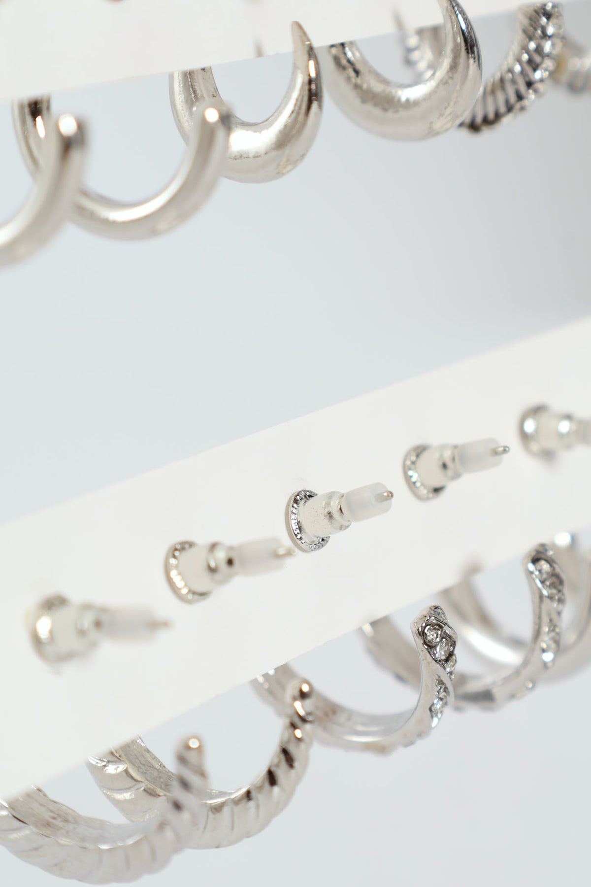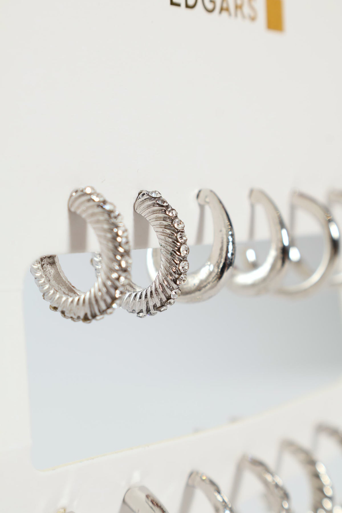 6 Pack Diamante Hoop Earrings - Silver