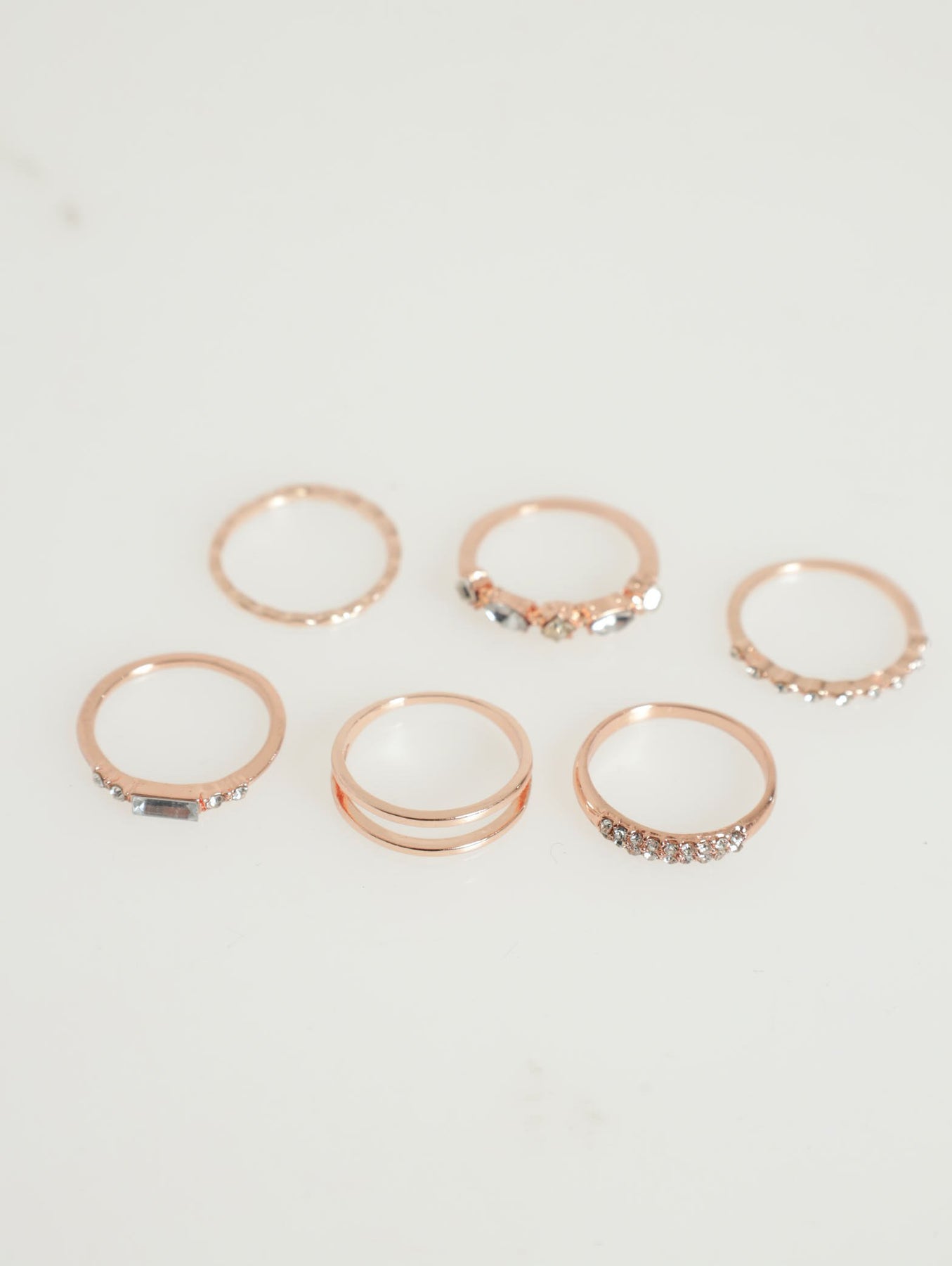 7 Pack Diamante Rings - Rose Gold