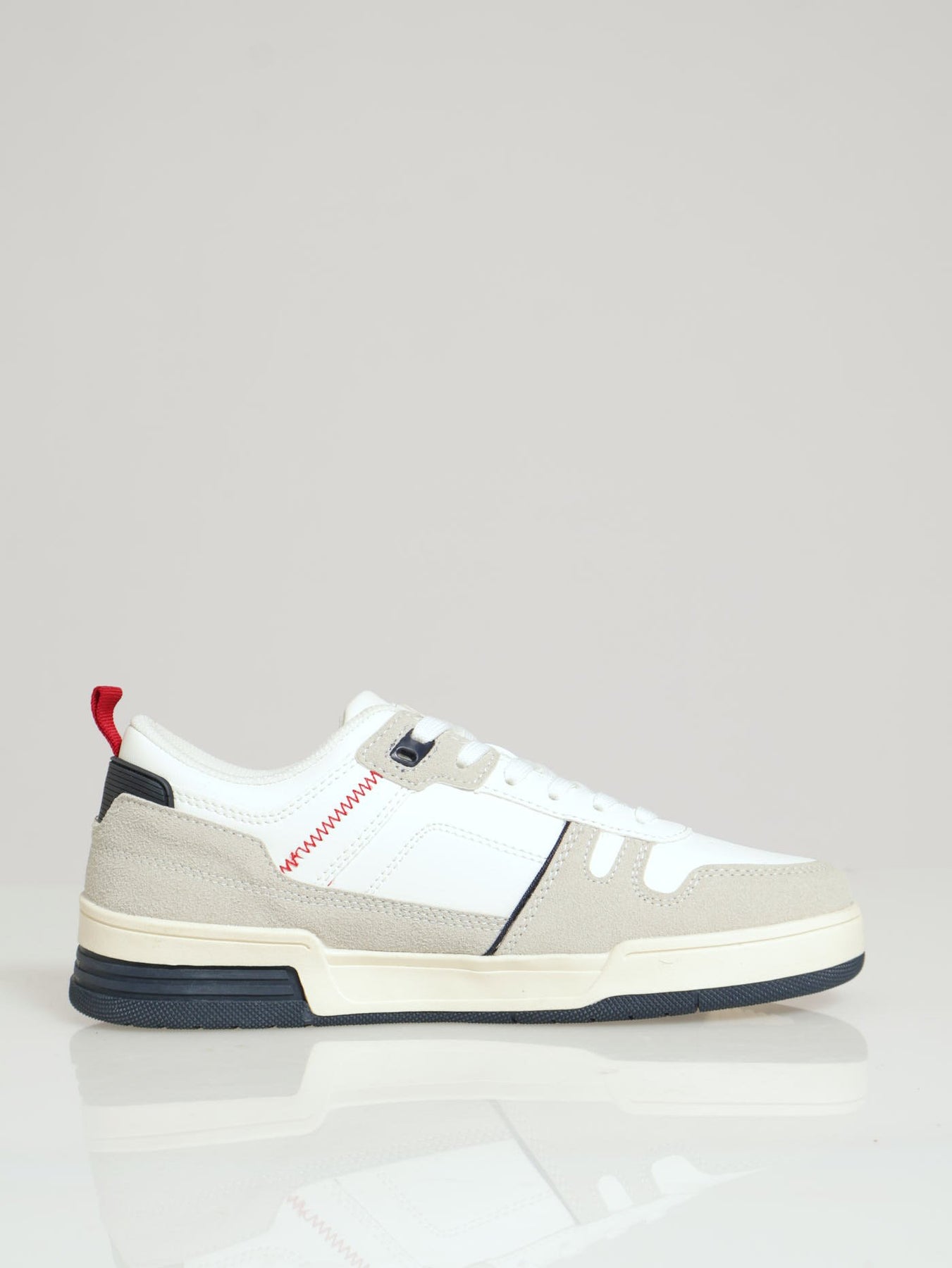 Aaron Contrast Lace Up Court Sneaker - Beige/White