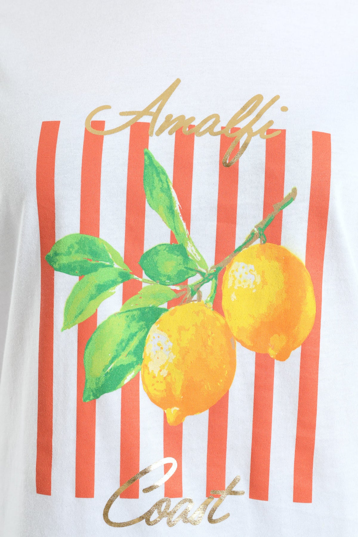 Amalfi Coast Stripe Lemon Boxy Tee - White