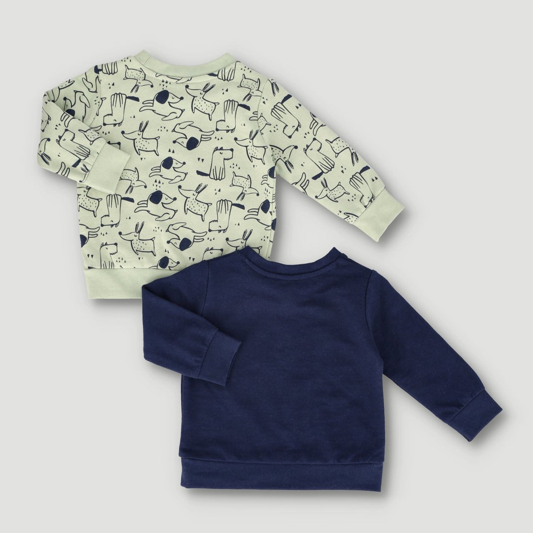 Baby Boys 2 Pack Long Sleeve Sweat Top - Navy
