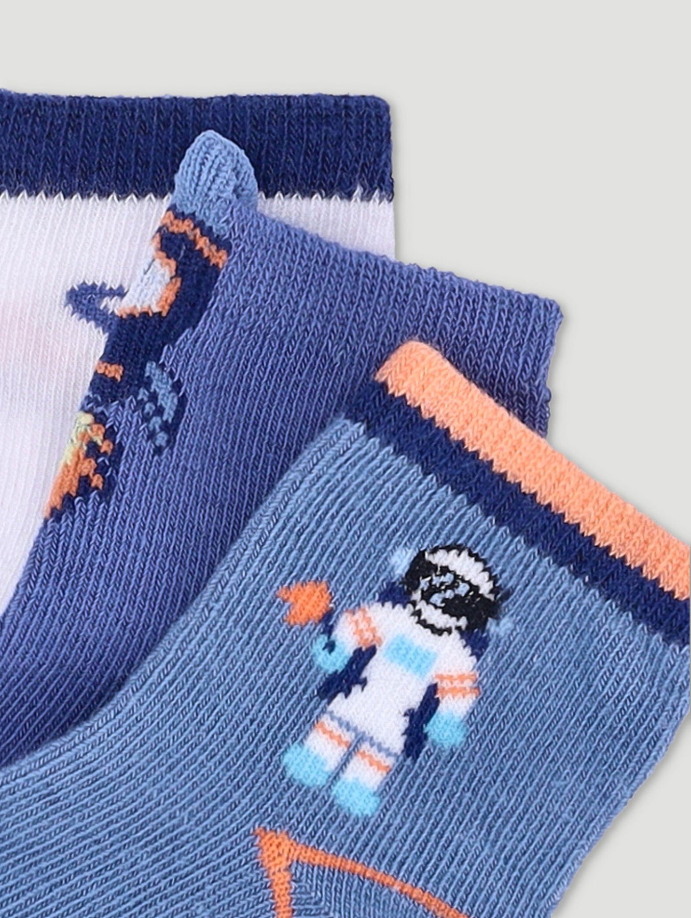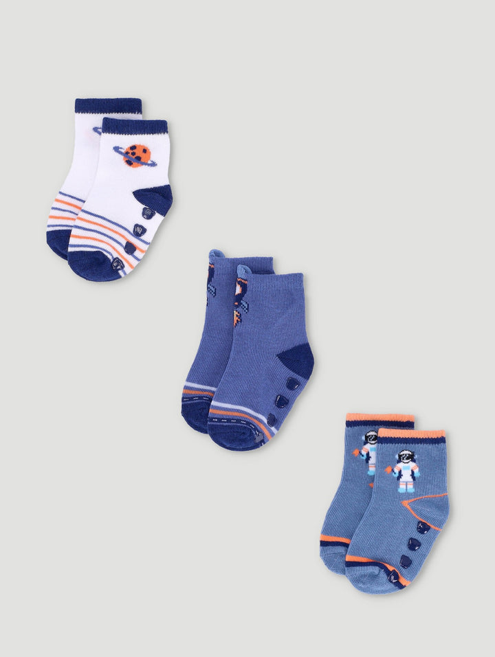 Baby Boys 3 Pack Cotton Astronaut Socks - Blue