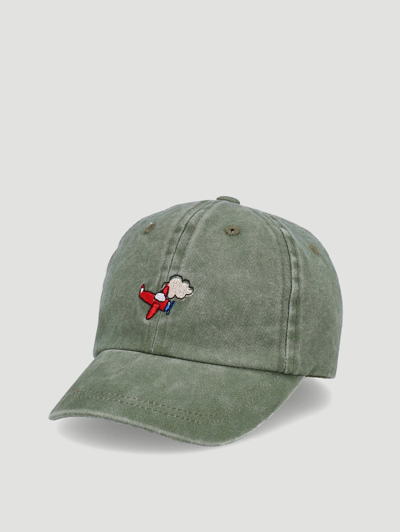 Baby Boys Chambray Peak Hat With Embroidery - Olive