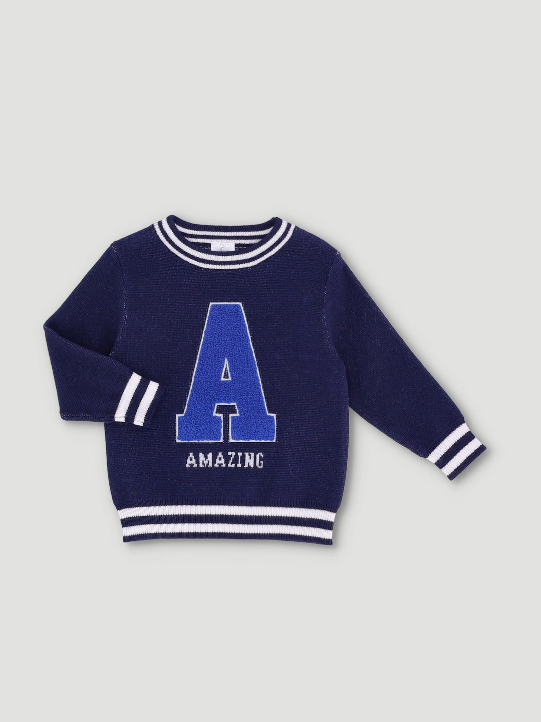 Baby Boys Pull Over Knit 3D Amazing Toweling Applique Knitwear - Navy