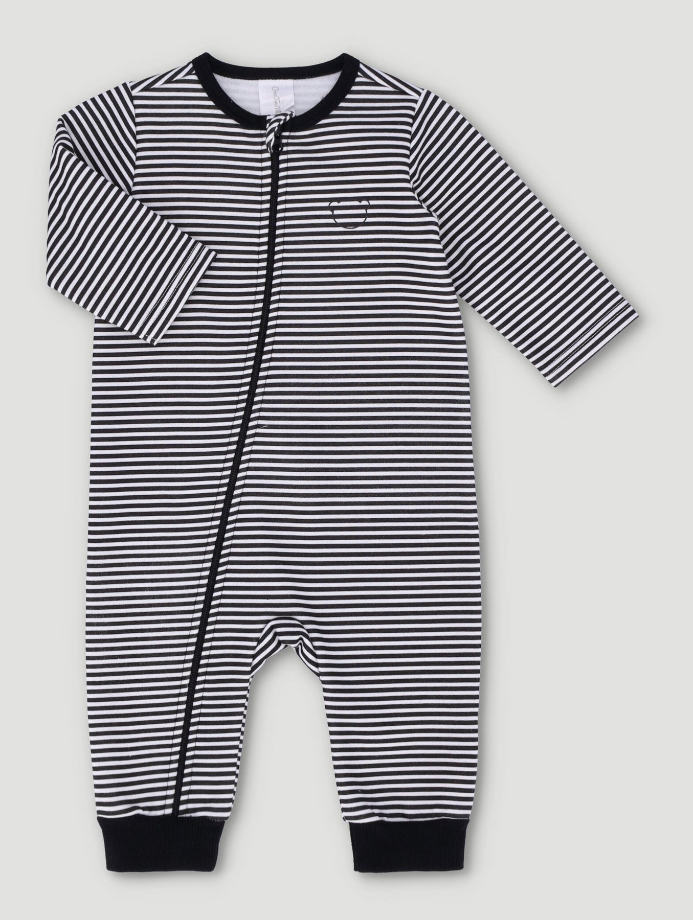 Baby Boys Stripe Brushed Fleece Sleepsuit - Black