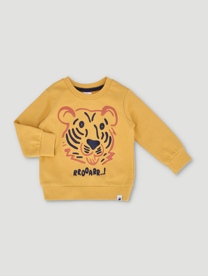 Baby Boys Tiger Puff Print Sweat Top - Mustard