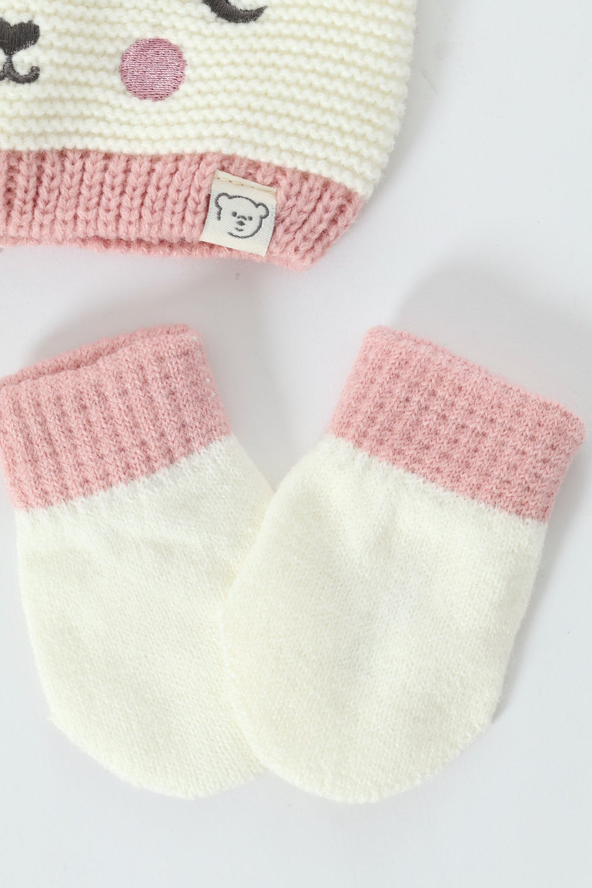 Baby Girls Bear Beanie & Mittens Set - Cream