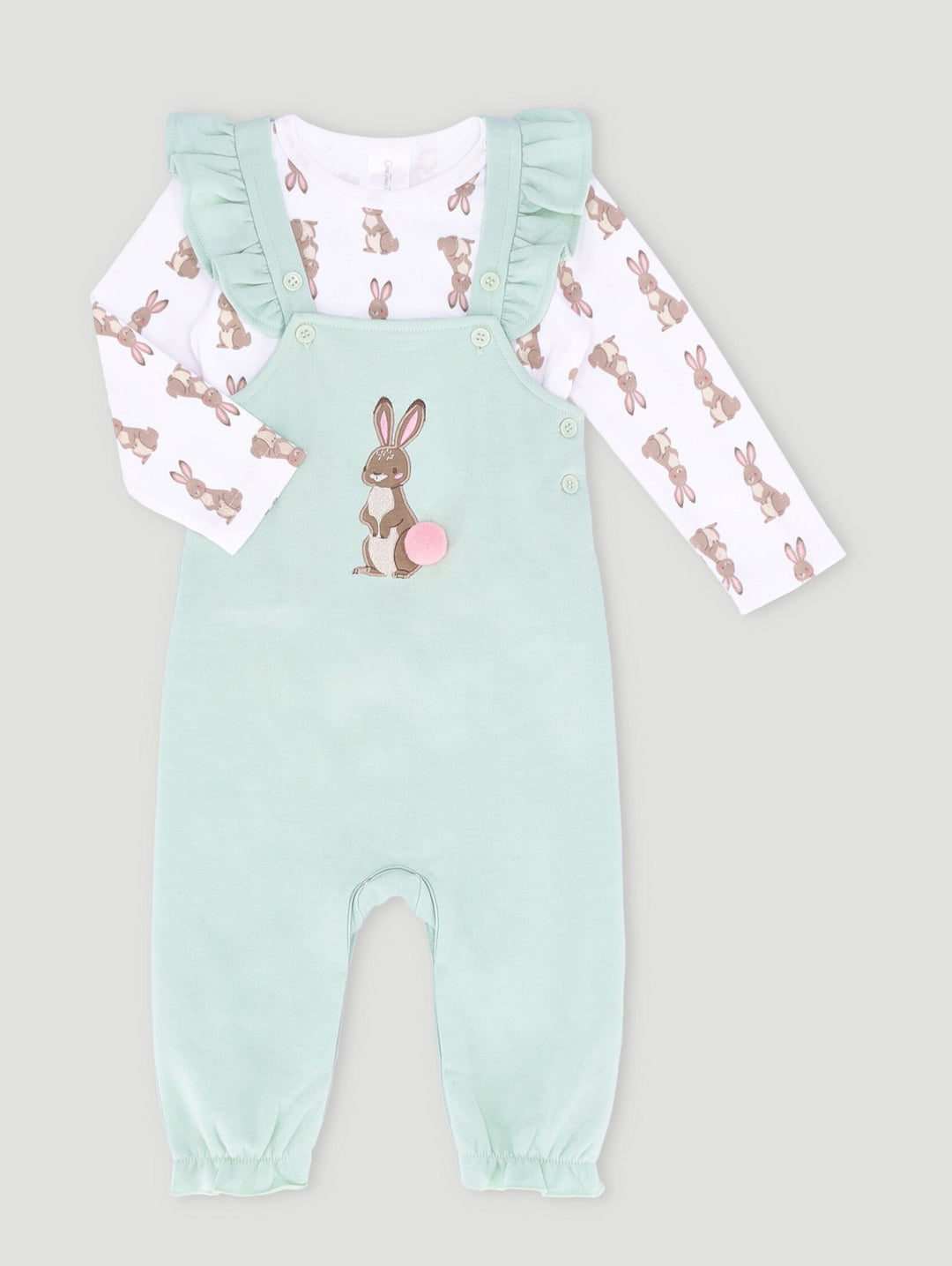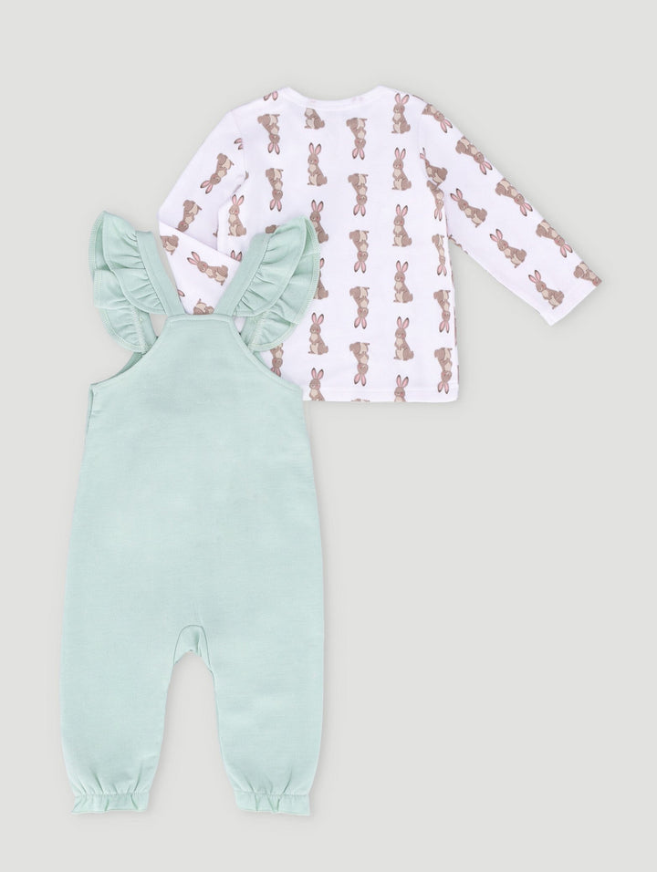 Baby Girls Bunny Fashion Dungaree Set - Sage