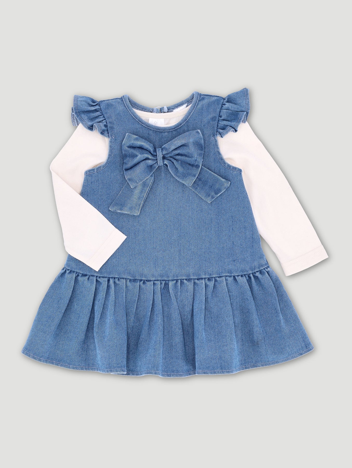 Baby Girls Denim Pinnie Dress With Tee - Mid Denim