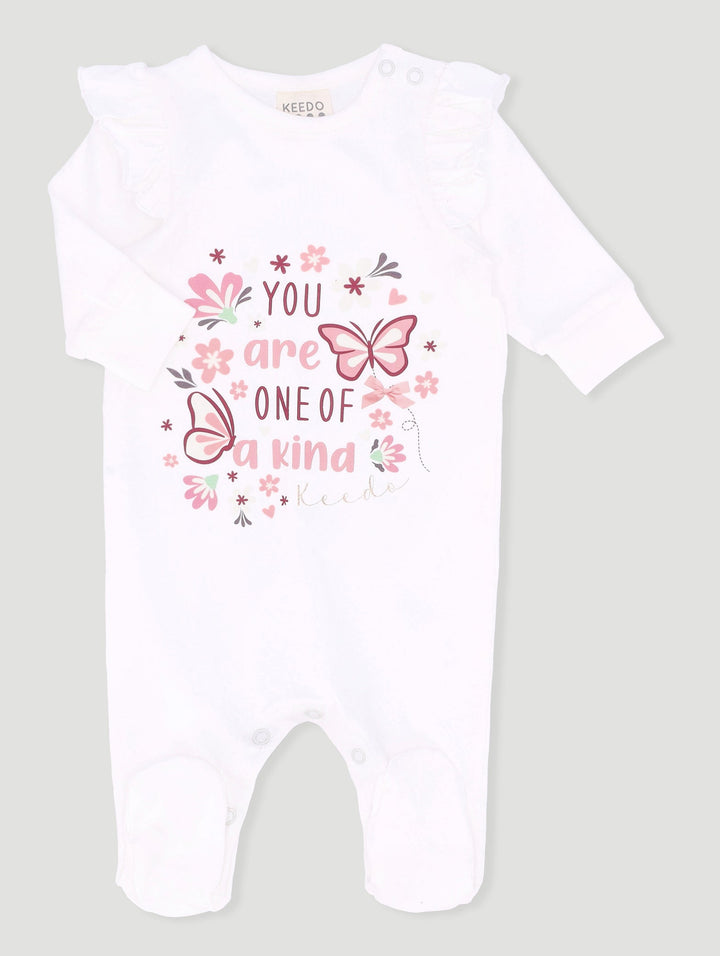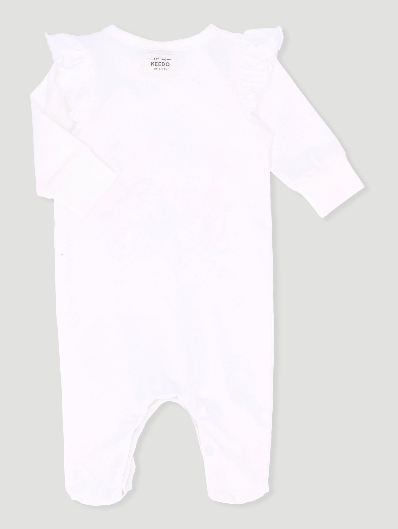 With our Baby Girls Frilled Cotton Lycra Sleepsuit, your little one will have both comfort and style. Made with premium materials, the suit features a delicate frilled design and a cute placement print. The soft and stretchy fabric allows for natural movement while keeping your baby snug. Dress your baby in this charming sleepsuit for sweet dreams and a playful look.
