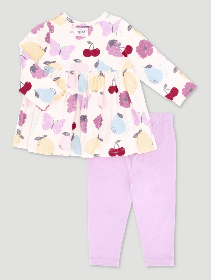 Introducing the Baby Girls Fruit Dress & Legging Set! Made with high-quality materials, this set includes a charming fruit dress and comfortable leggings. Perfect for playdates or outings, your little one will feel cute and comfy all day. Dress up your baby girl in this adorable set now!