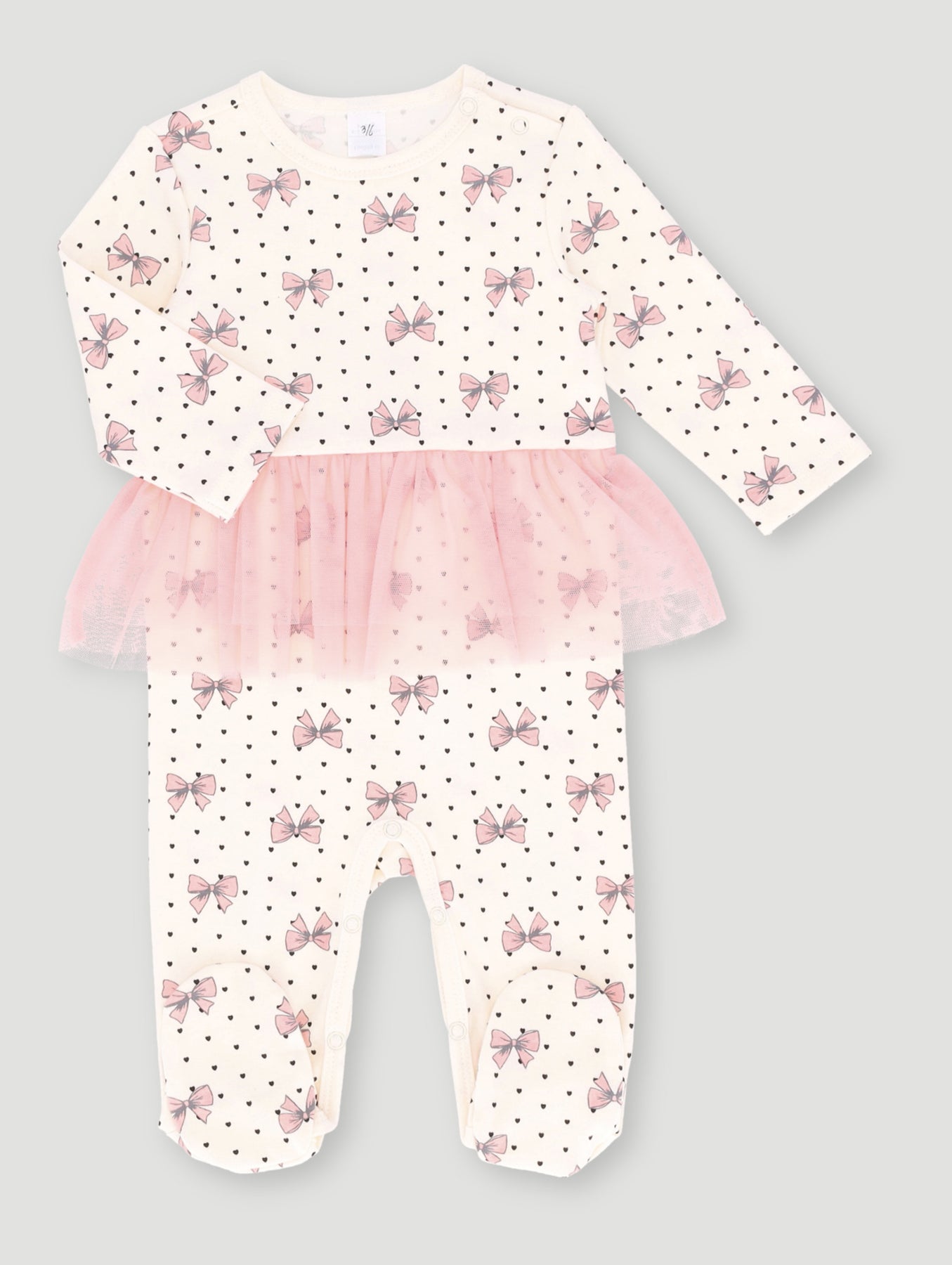Baby Girls Knit Bow/Tulle Printed Sleepsuit - Cream Multi