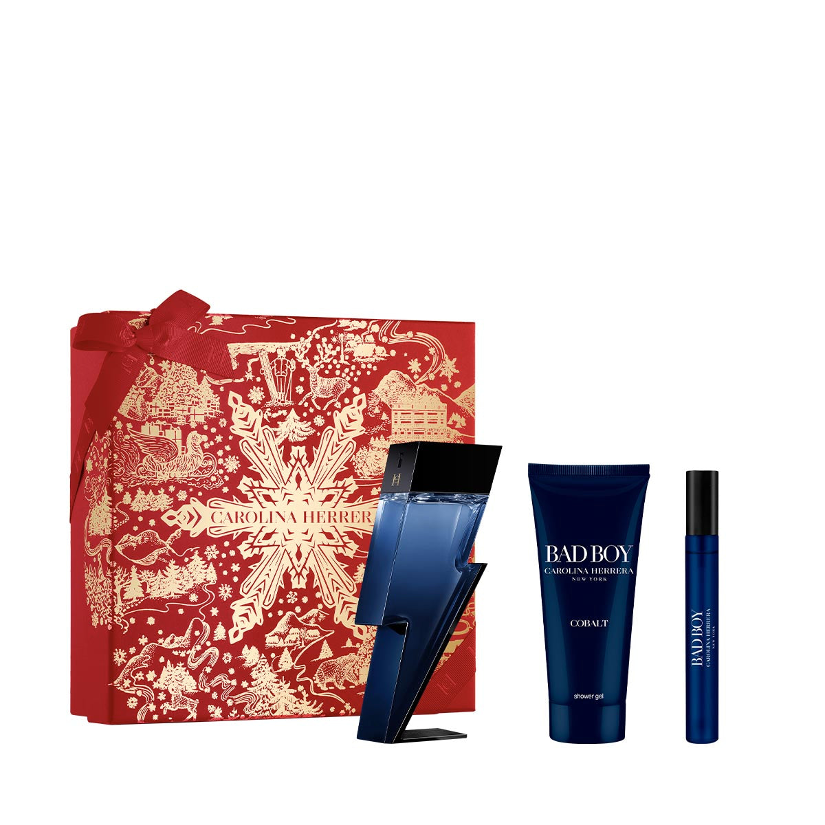 This three-piece gift set contains a BAD BOY Le Parfum Eau de Parfum (100ml), Mega Spritzer (10ml) and Shower Gel (100ml), an energizing shower gel that leaves skin soft, refreshed and delicately scented.