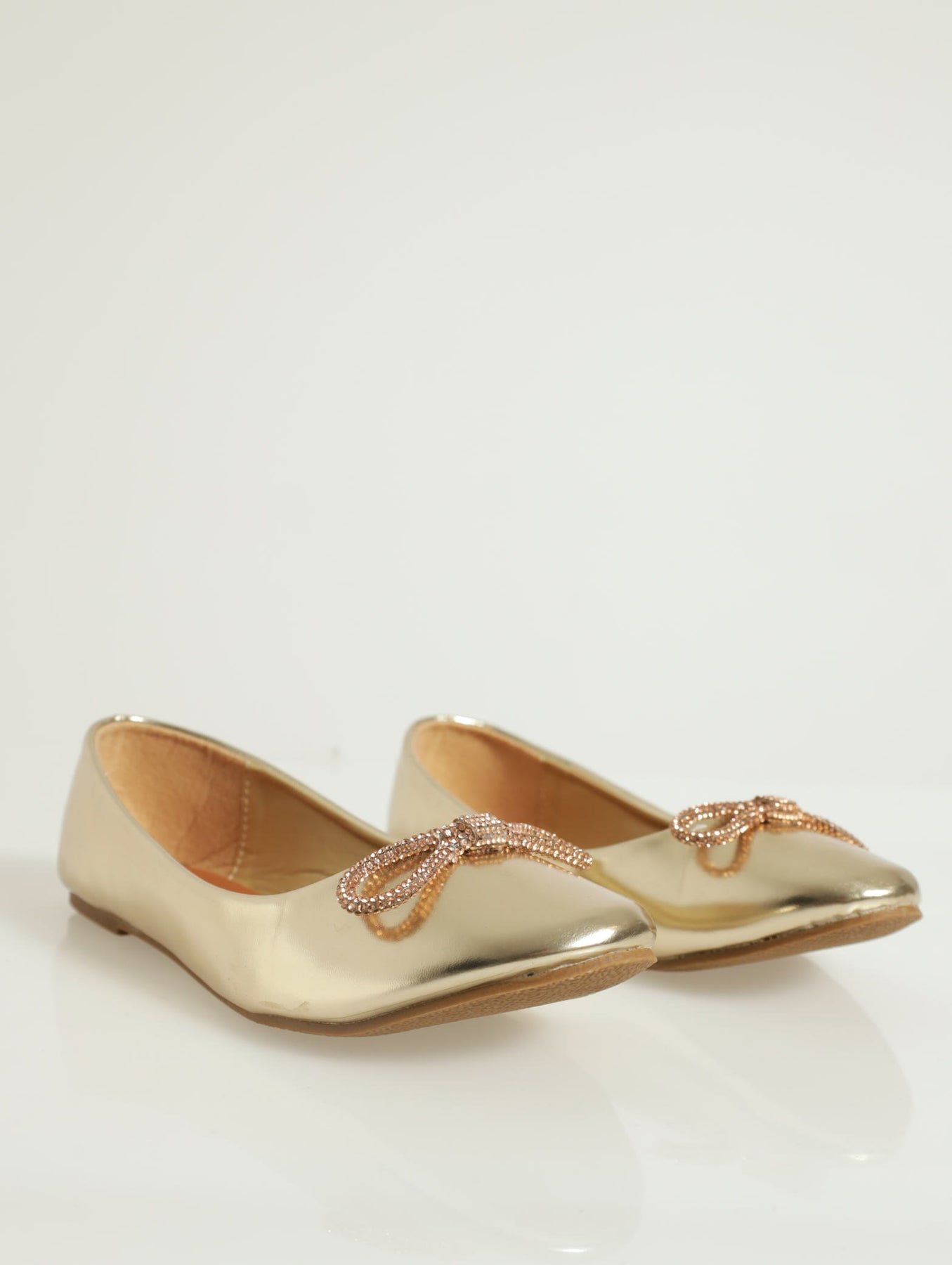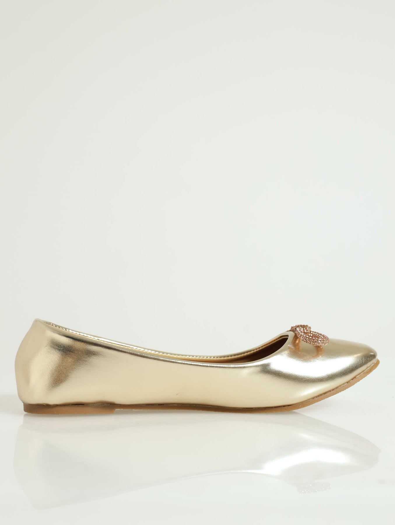 Ballet Pump With Embellished Bow - Gold