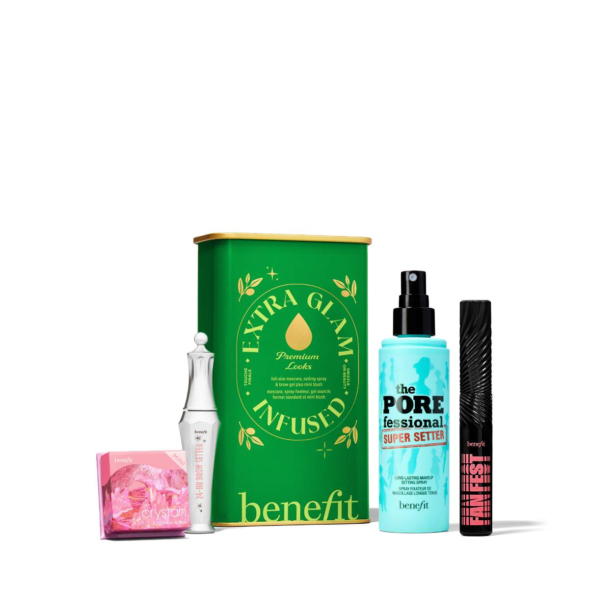 This set includes a bestselling mascara, a long-lasting makeup setting spray, a brow gel that provides up to 24-hour invisible shaping and setting, and a silky-soft buildable blush.