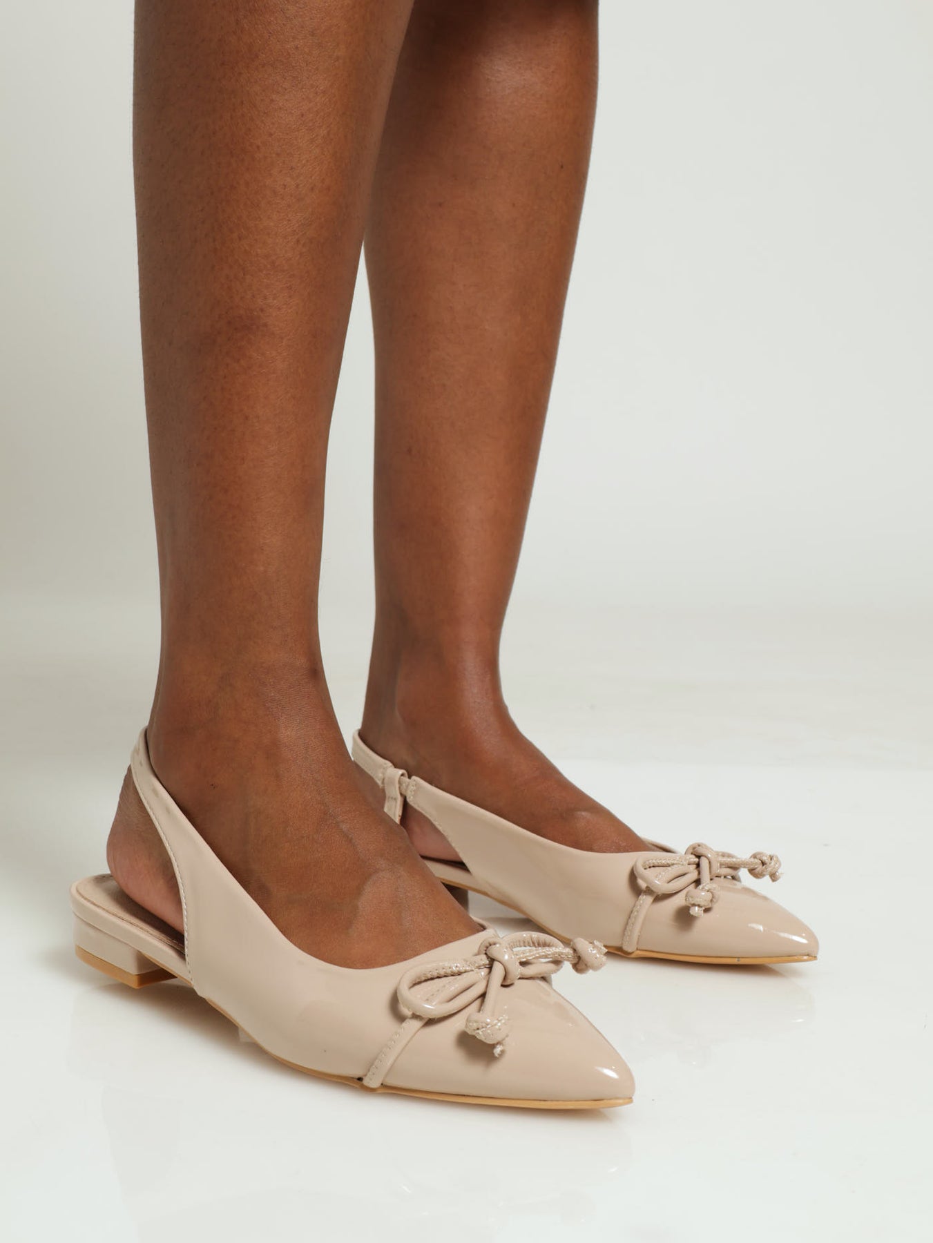 Bobbi Bow Detail Pointed Toe Slingback - Nude