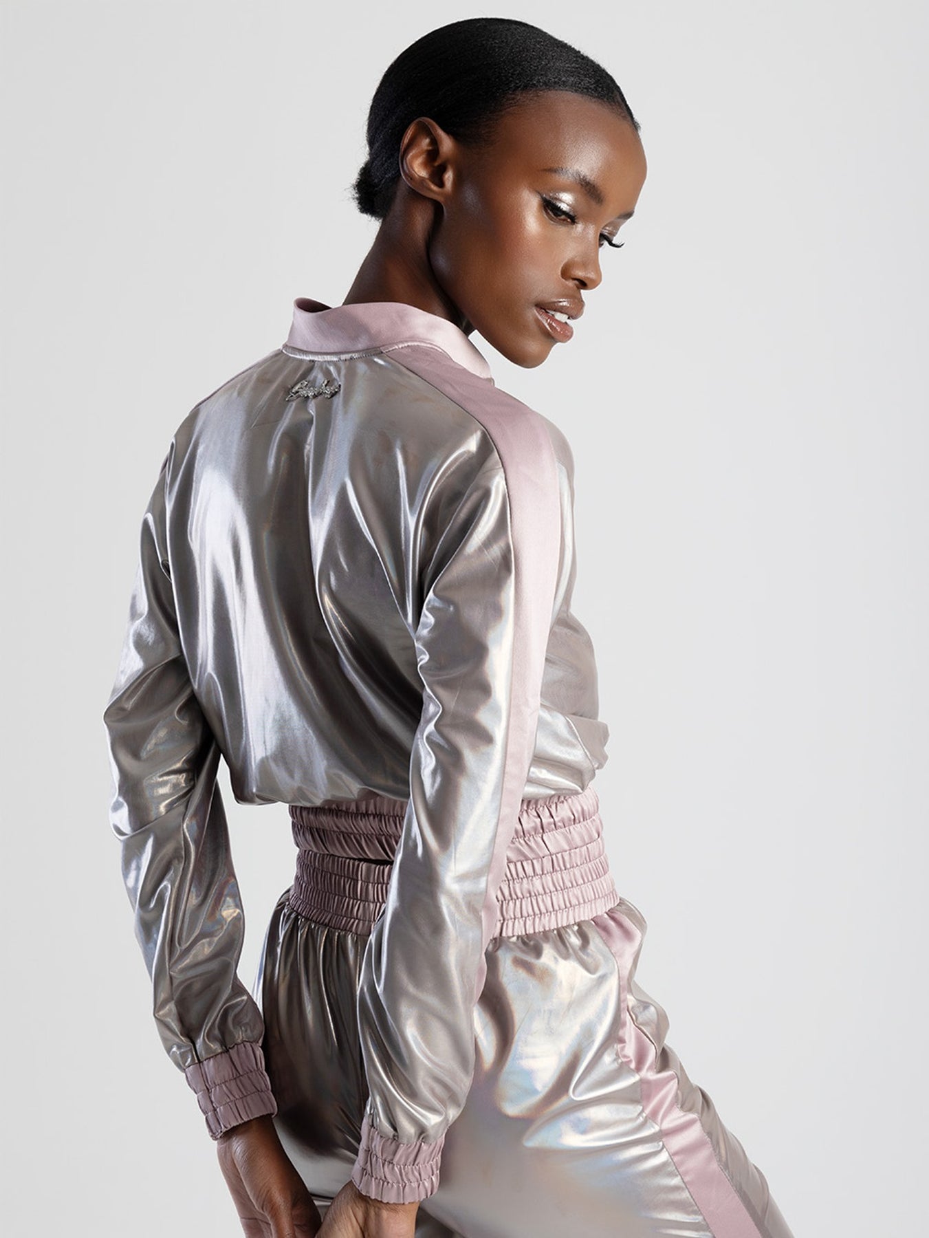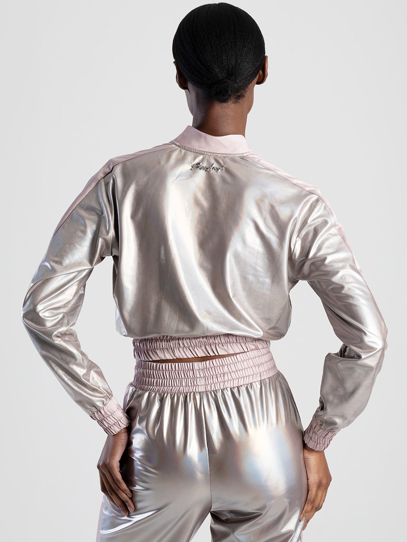 Bomber Style Zip Through Tracksuit Jacket - Silver