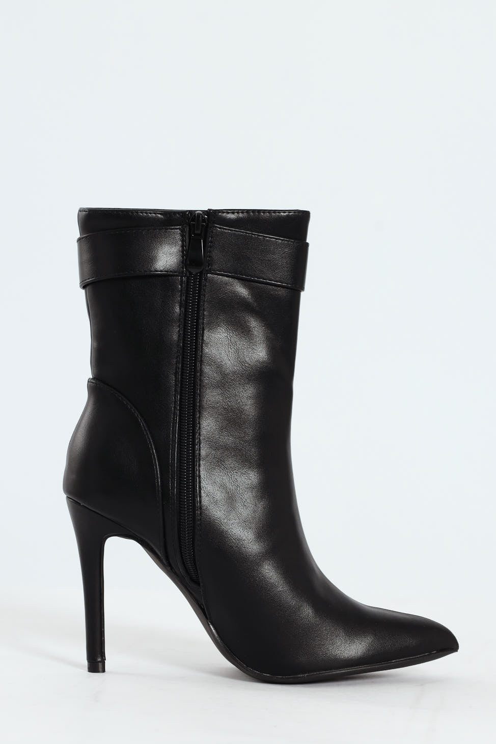 Boss 20 Buckle Stiletto Ankle Boot - Black