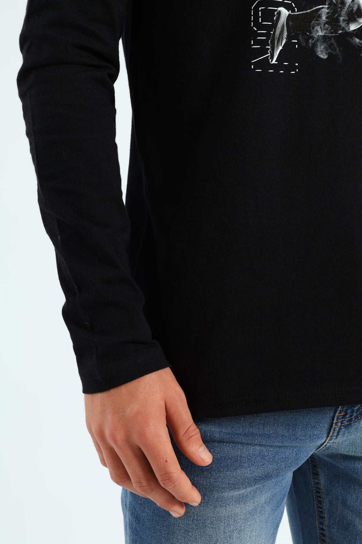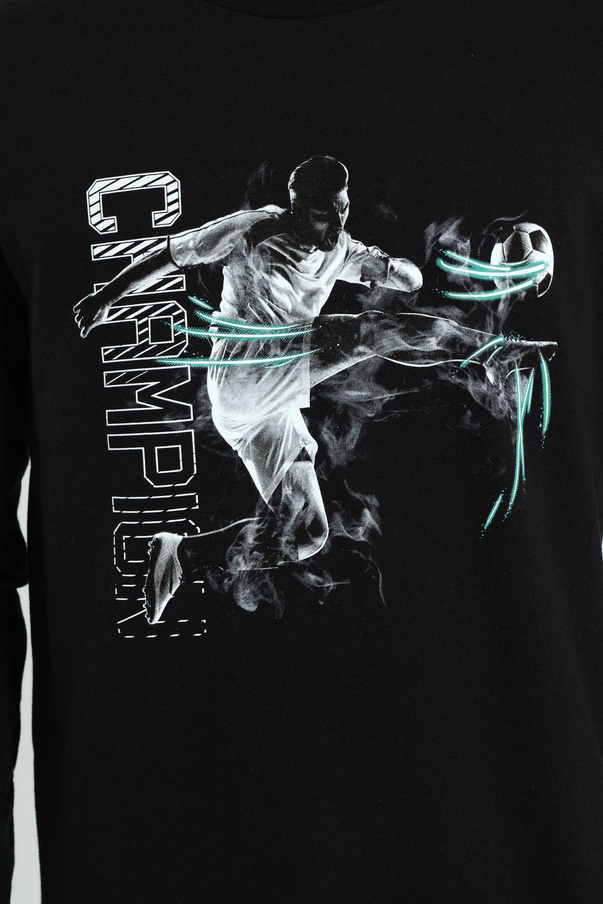 Boys 2 Pack Long Sleeve Gamer & Soccer Tees - Grey Melange/Black