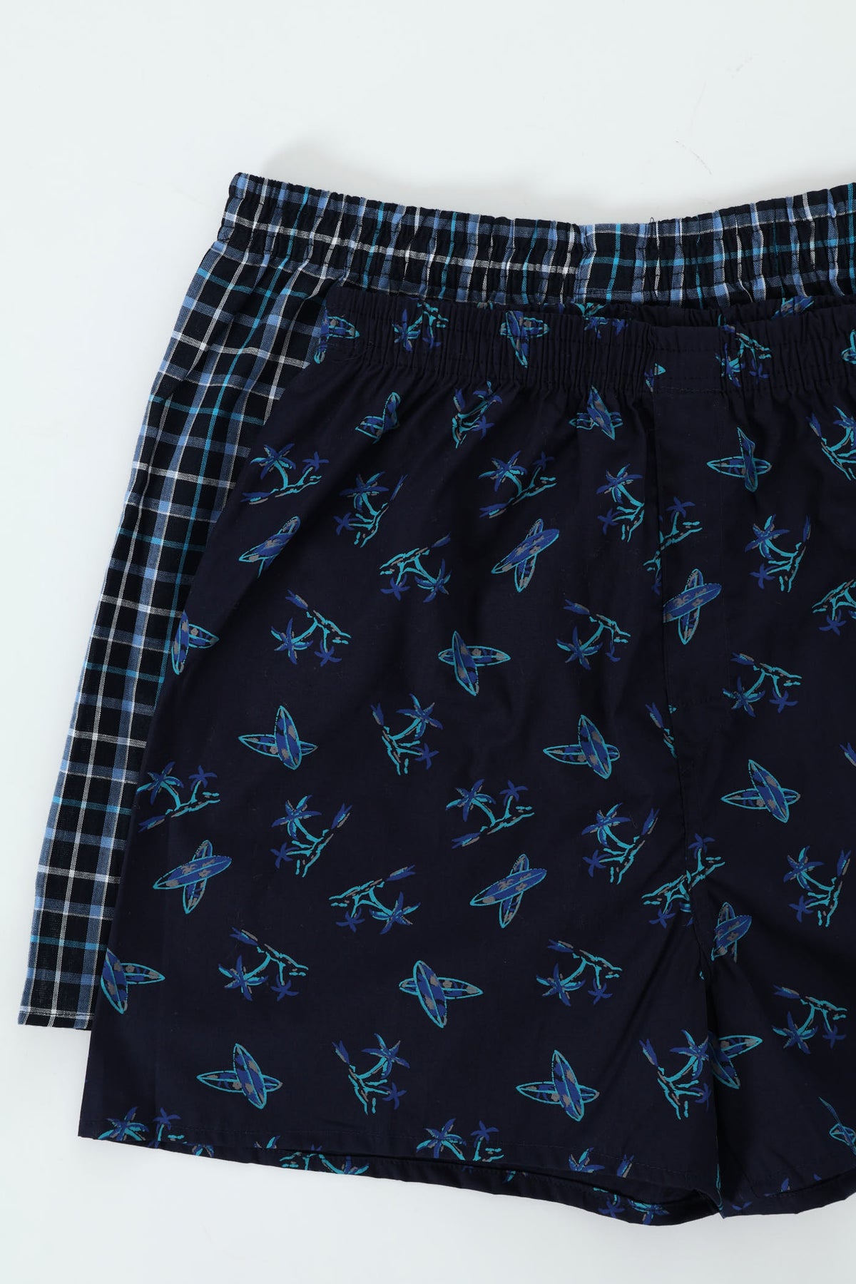 Boys 2 Pack Woven Check Palm Trees Boxers - Navy
