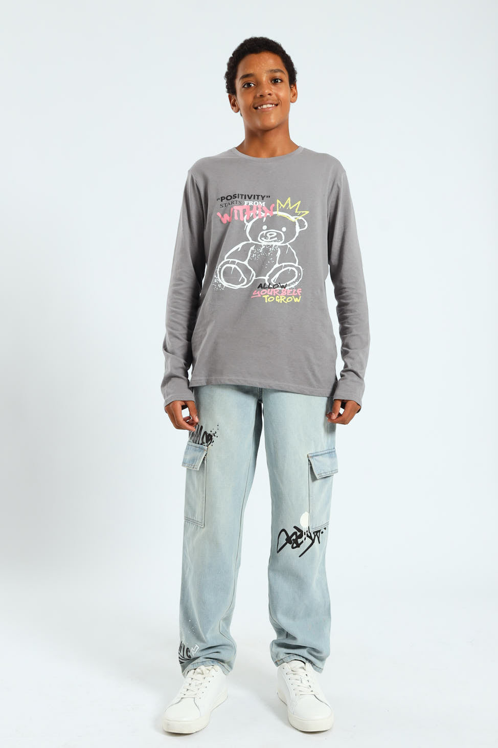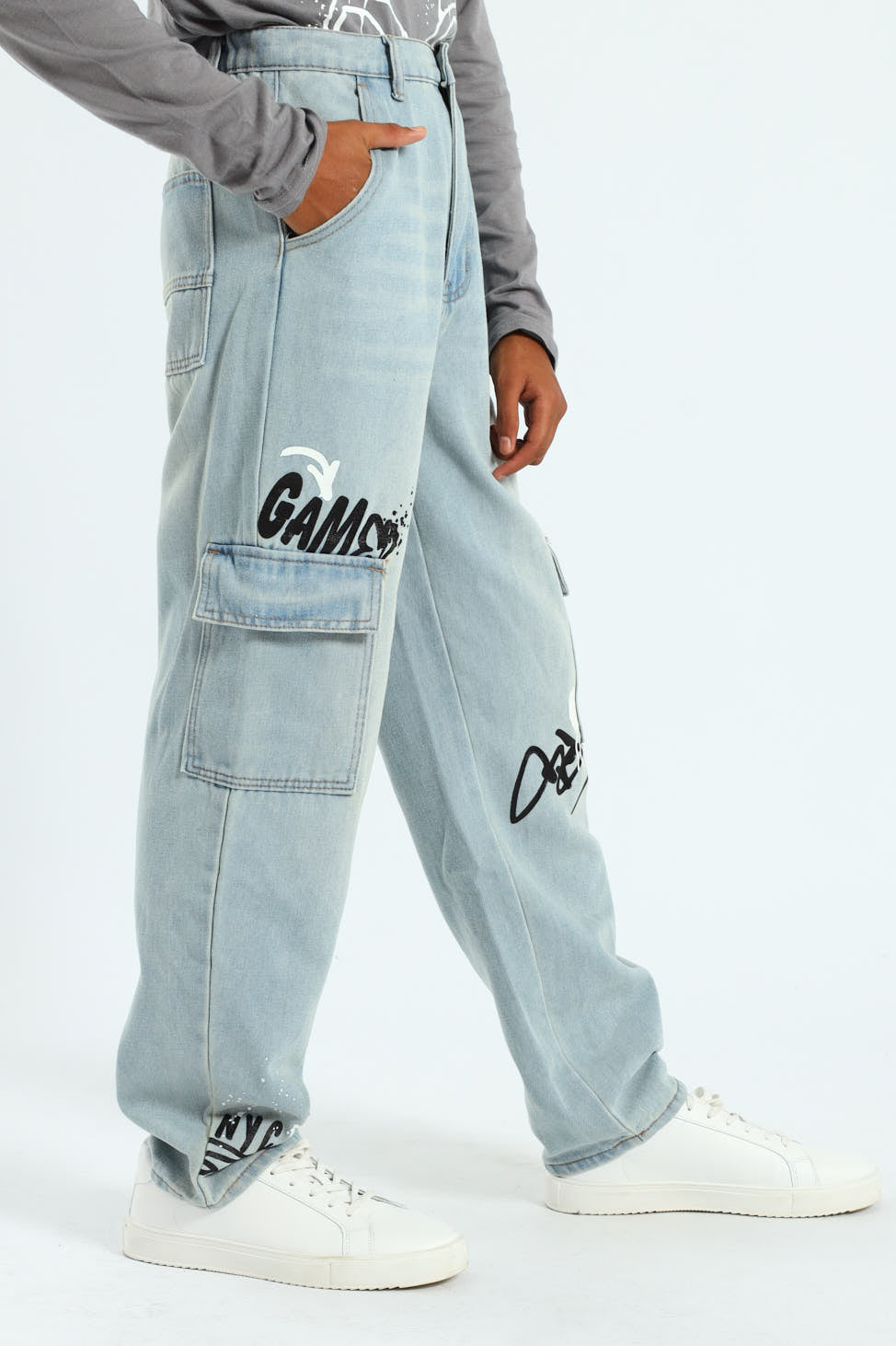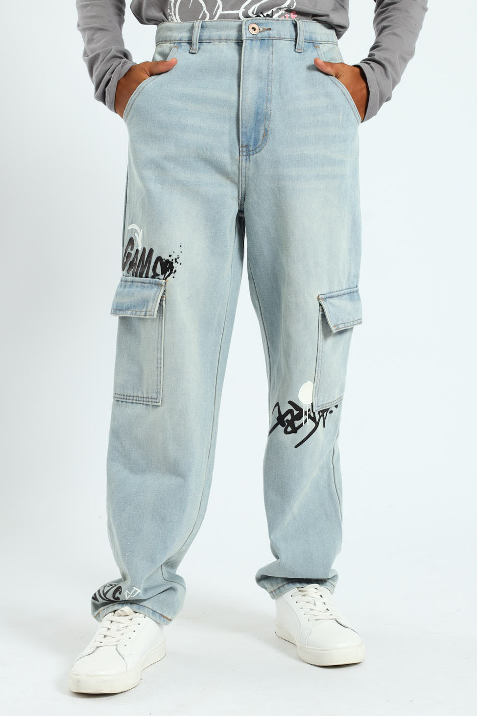 Boys Baggy Grafitti Denim - Stonewash