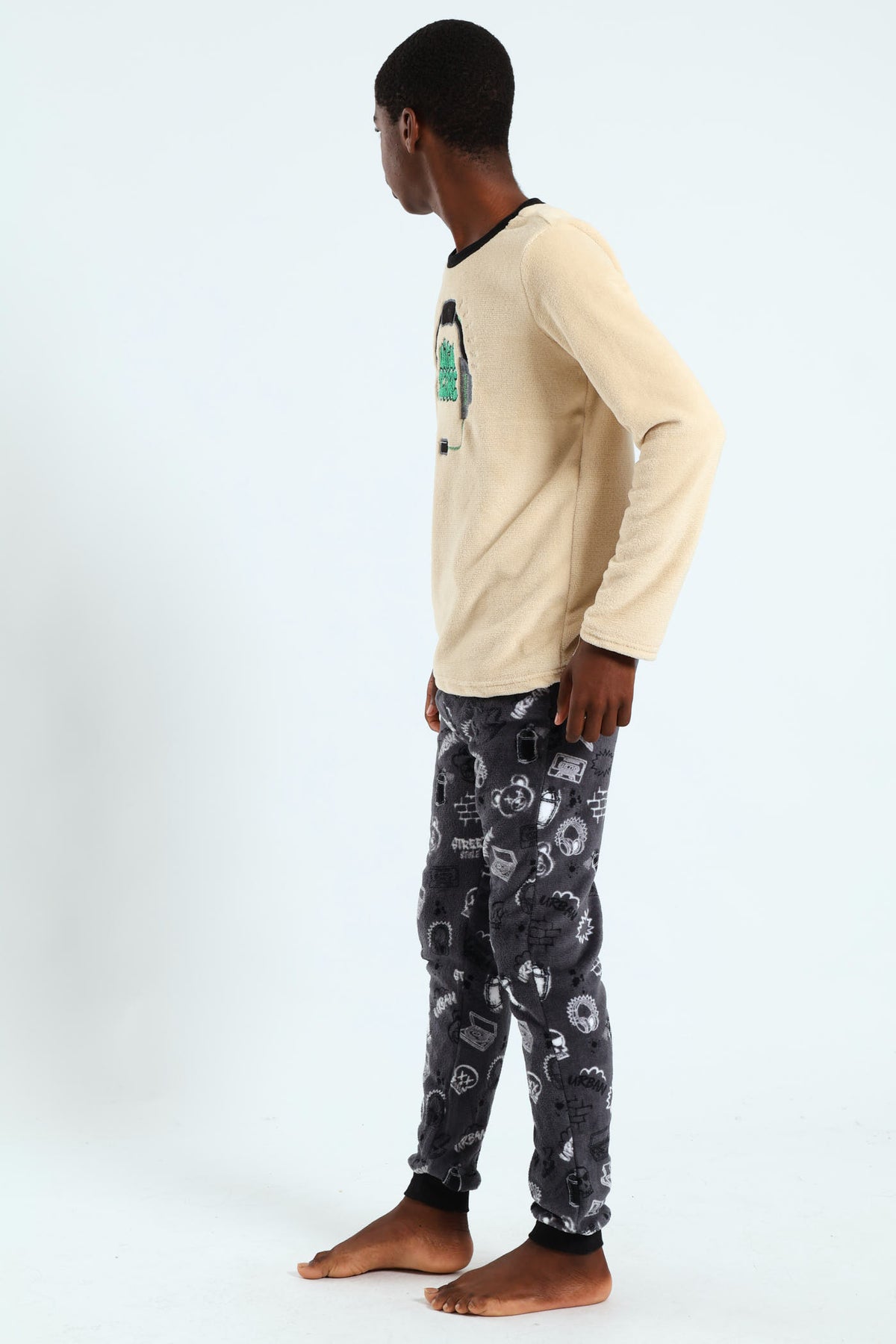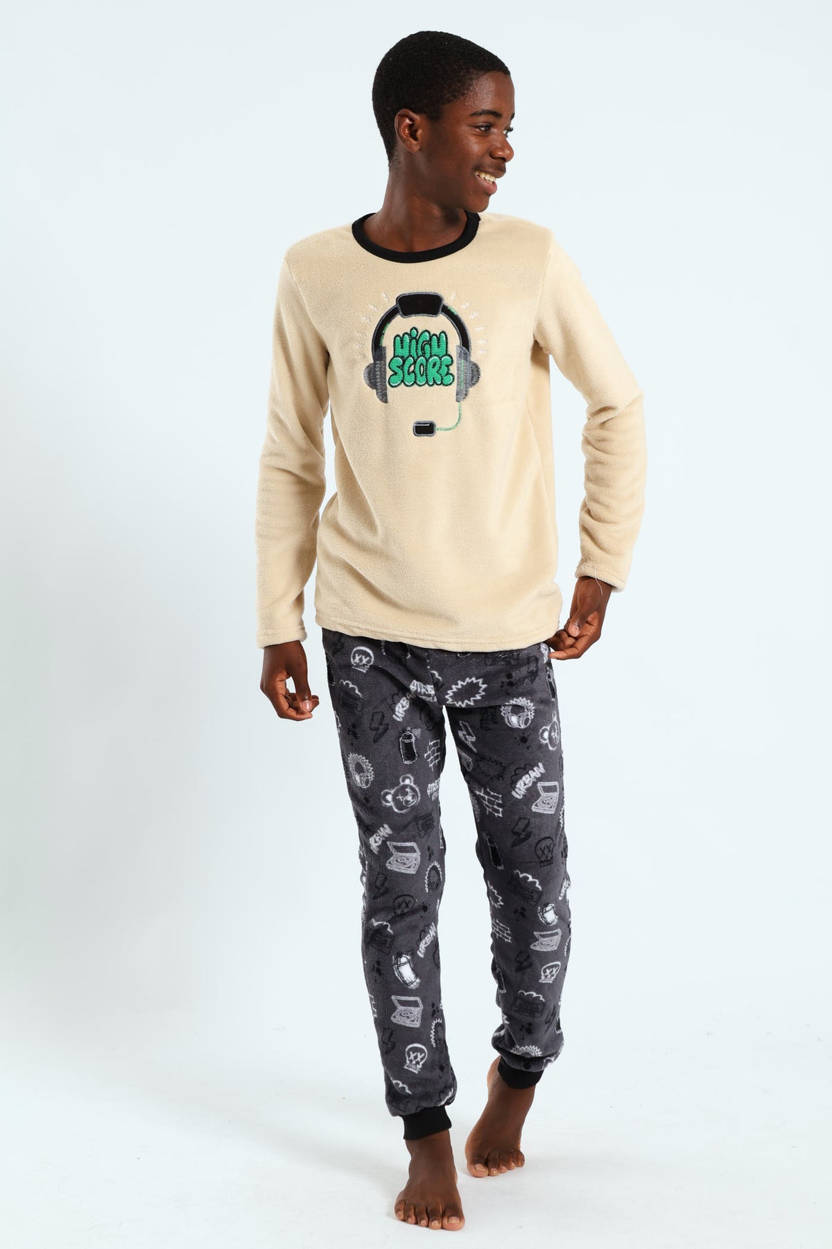 Boys Coral Fleece Graffiti Headsets Sleep Set - Nude