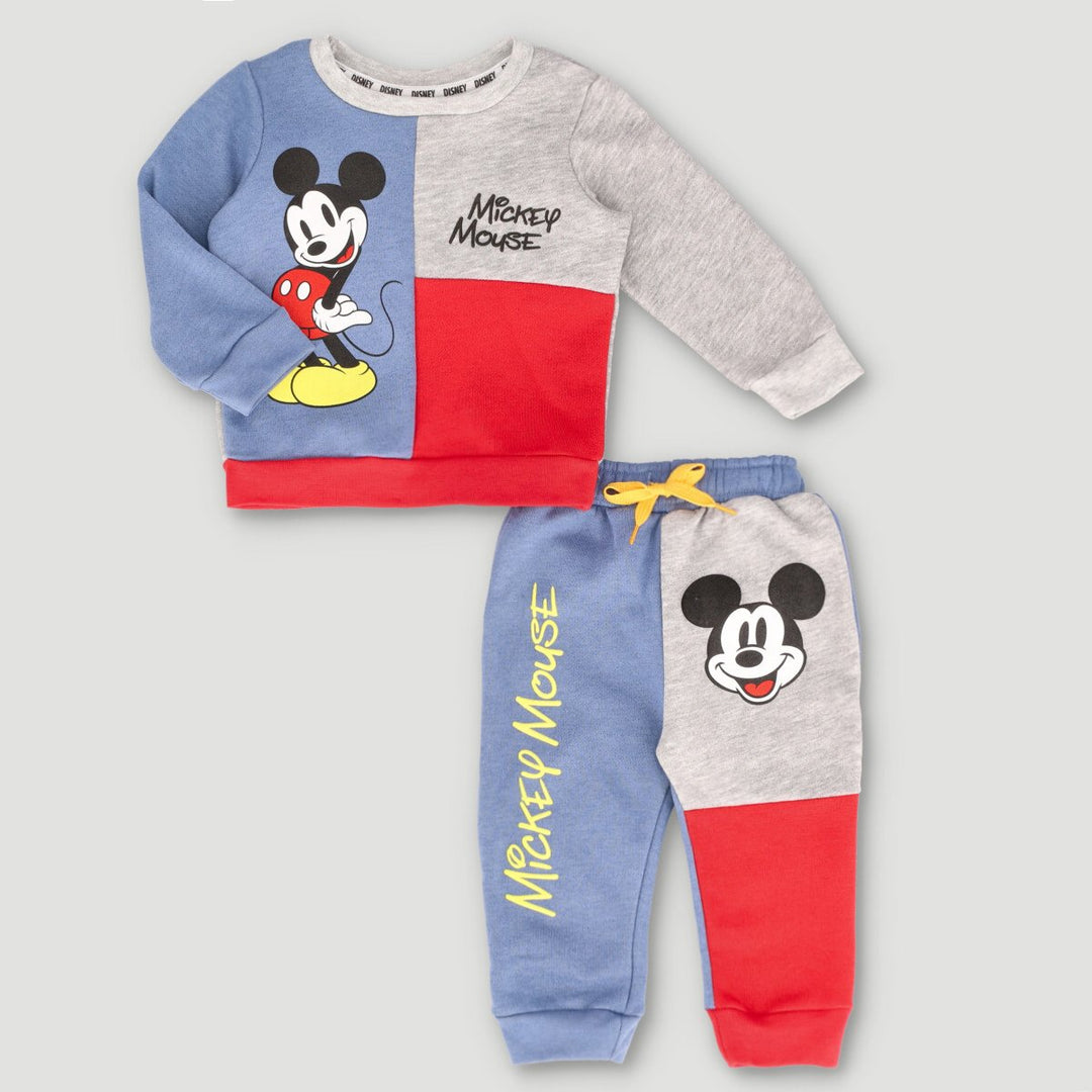 Boys Long Sleeve Mickey Fleece Colourblock - Grey Melange