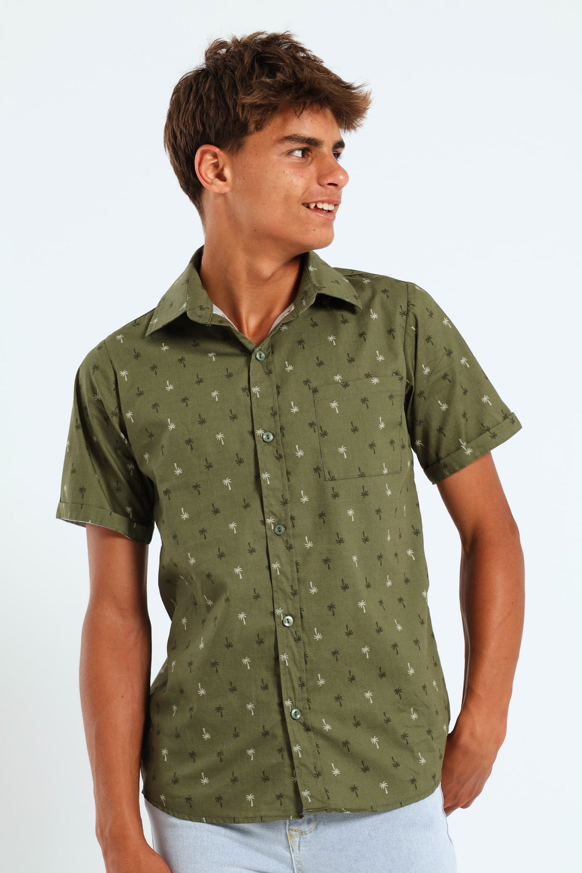 Boys Palm Tree Shirt - Olive