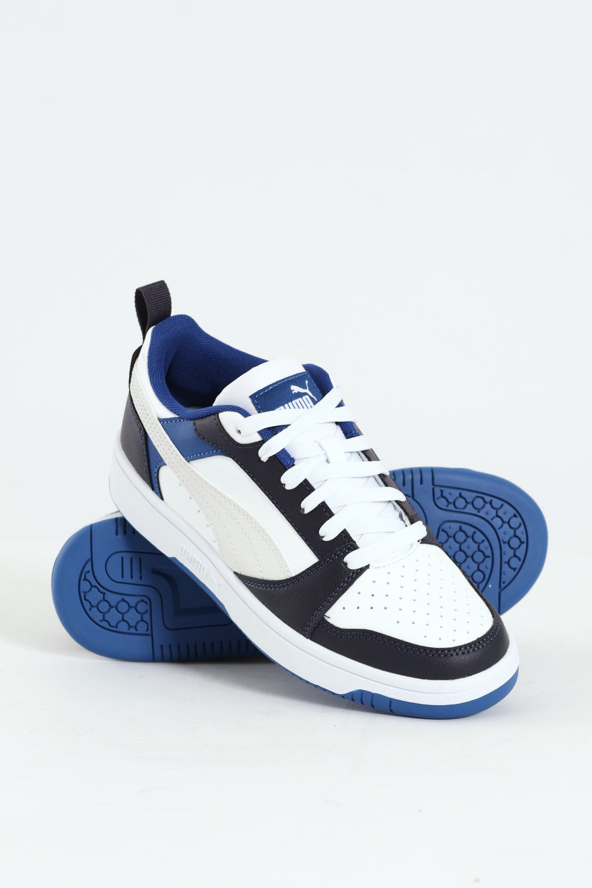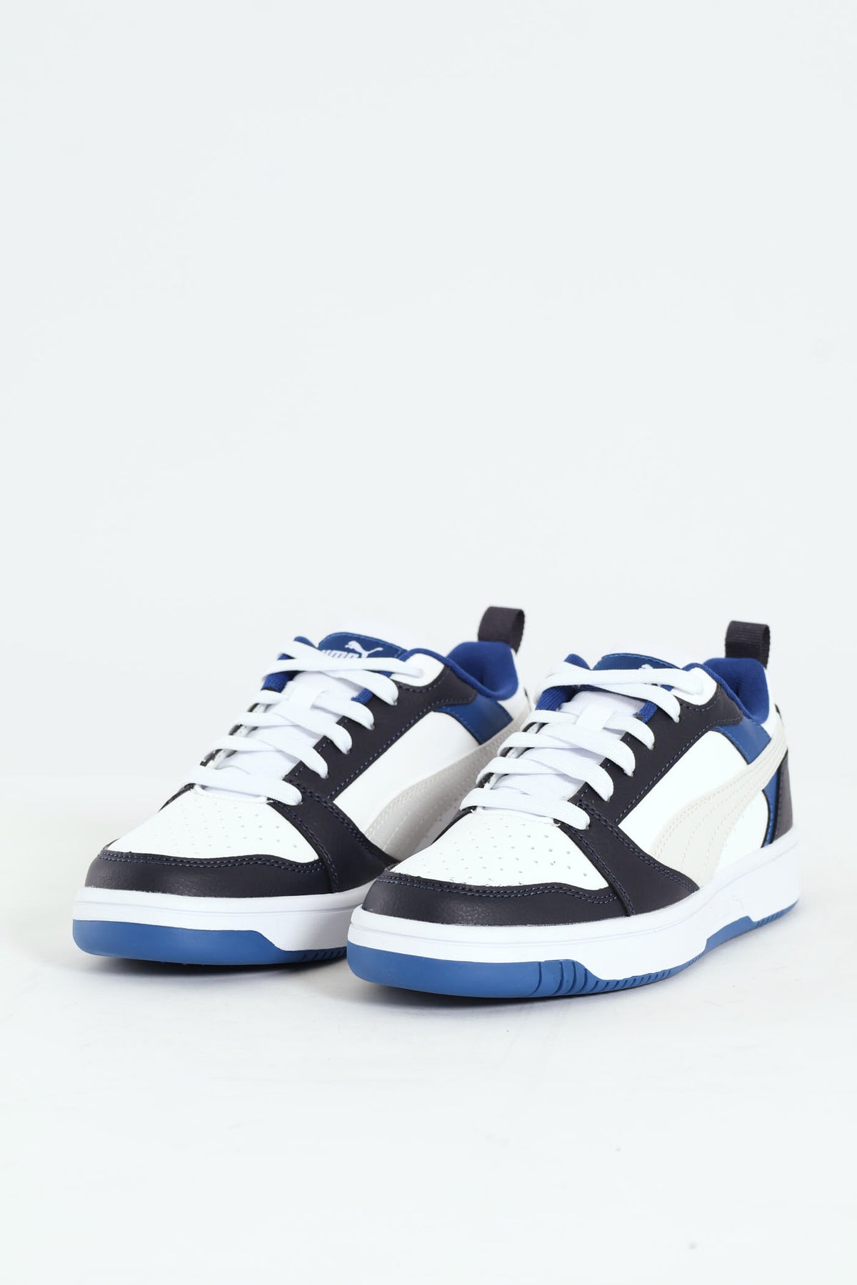 Boys Puma Rebound V6 Low Sneaker - White/Blue