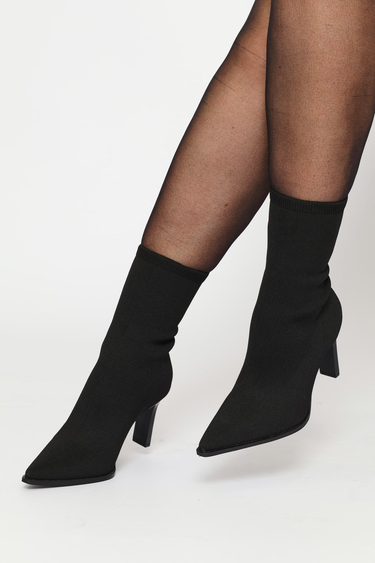Cable Knit Flat Heel Sock Boot - Black