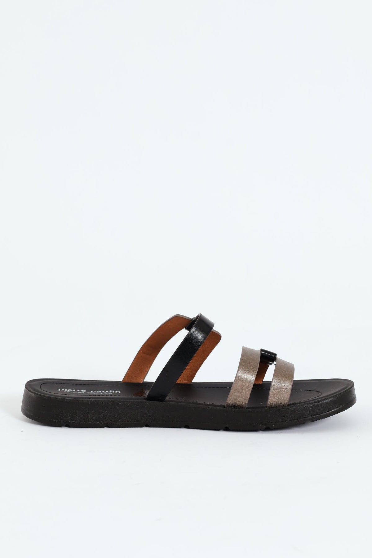 Caley Black/Pewter Chain Link Push-in Sandal - Black
