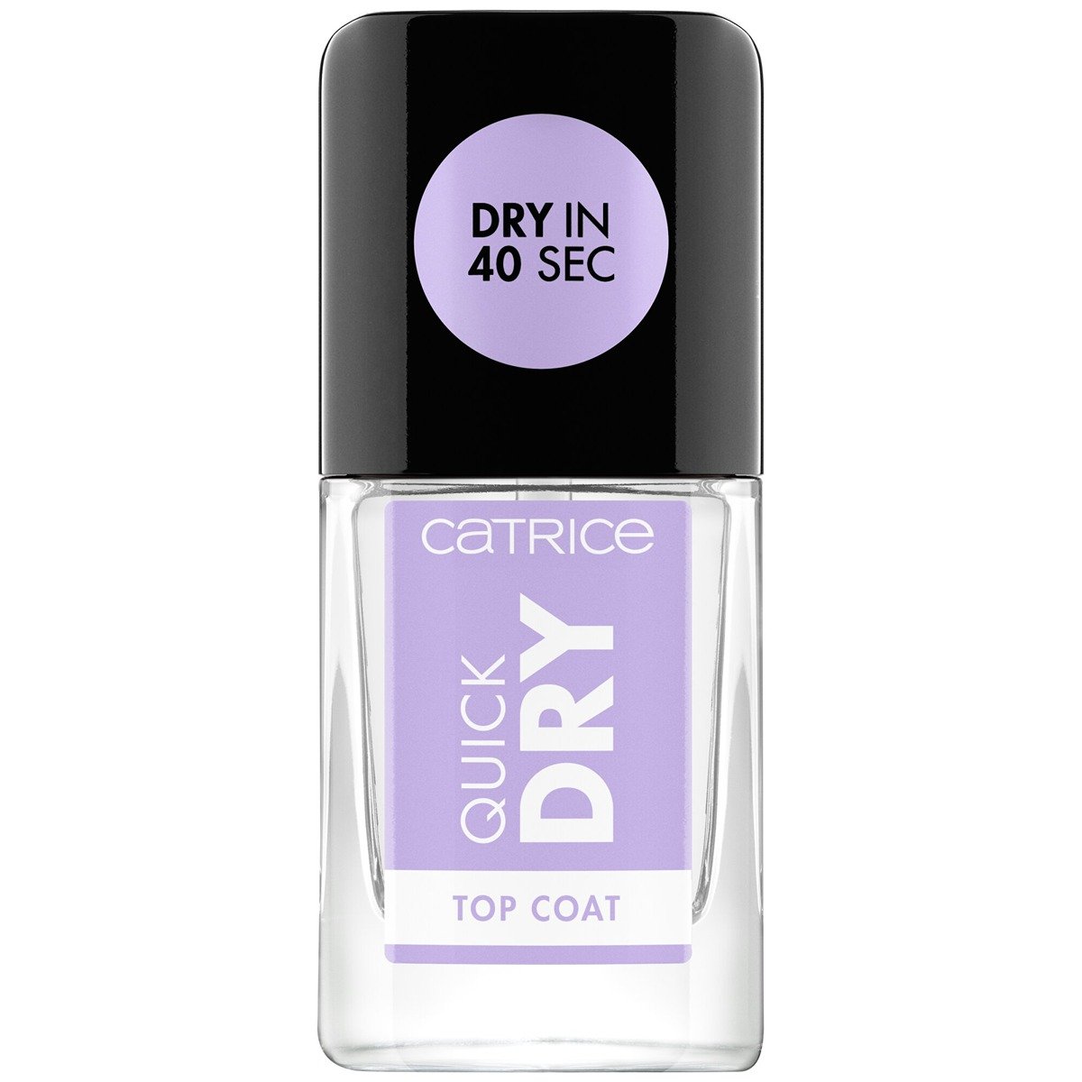 Quick dry top coat. Dry in 40 sec. Reduces drying time + extends durability of nailpolish. High-shine finish.