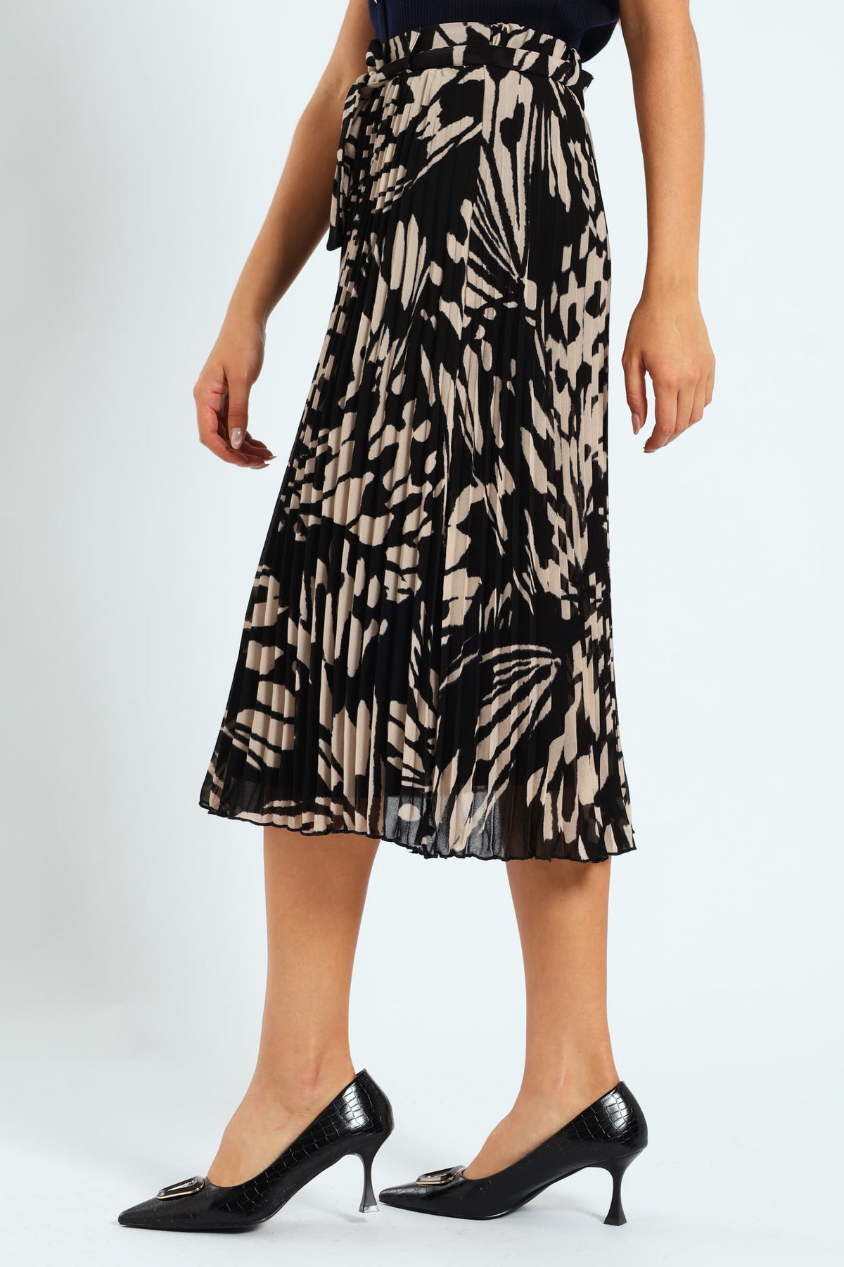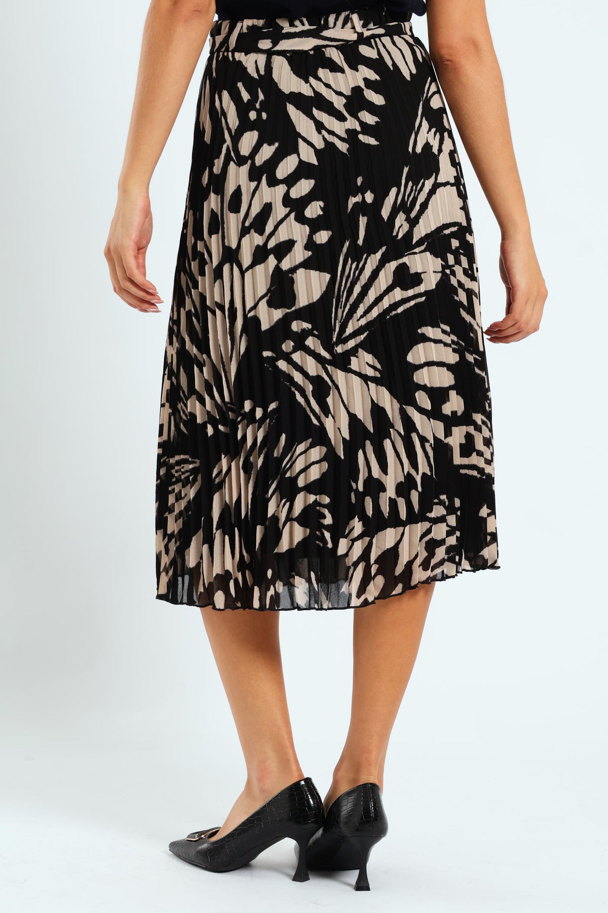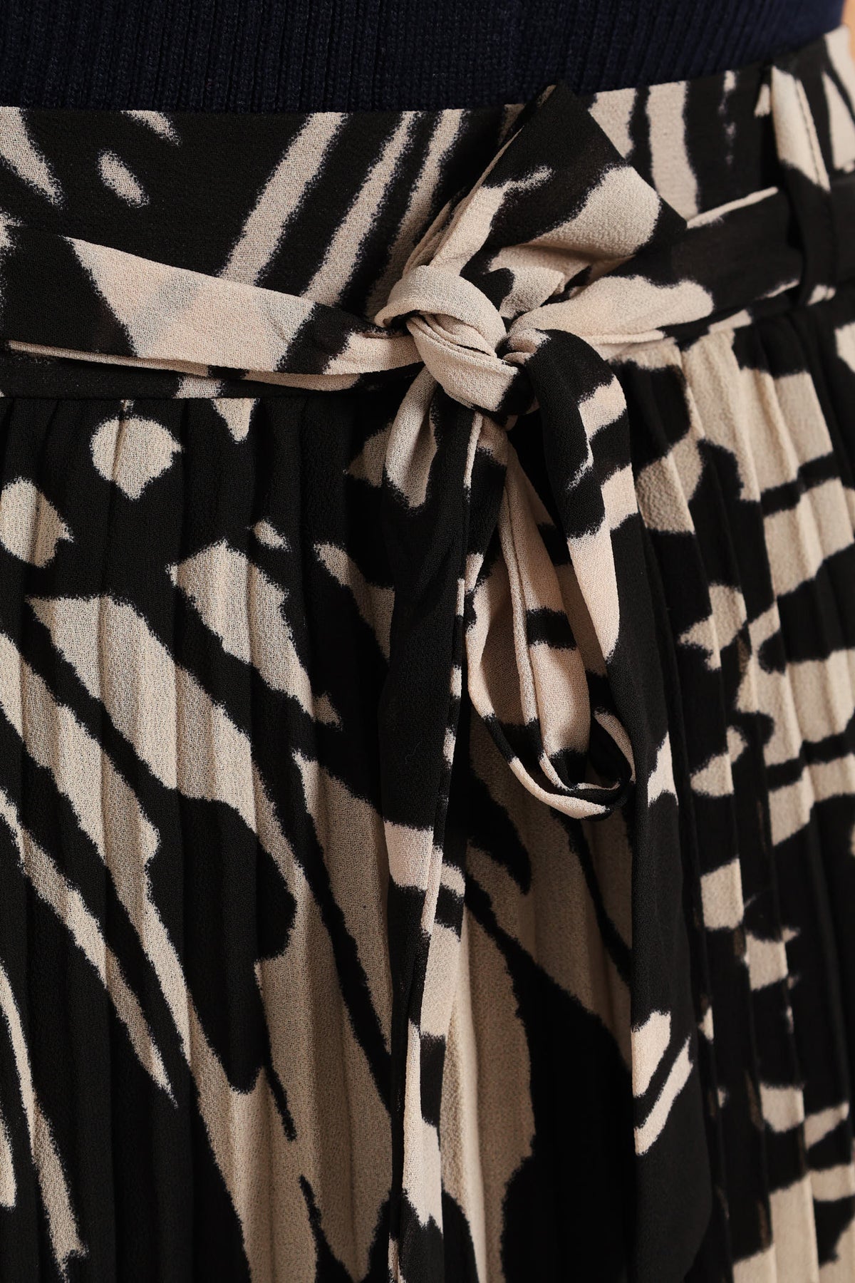 Chiffon Pleated Midi Skirt - Black