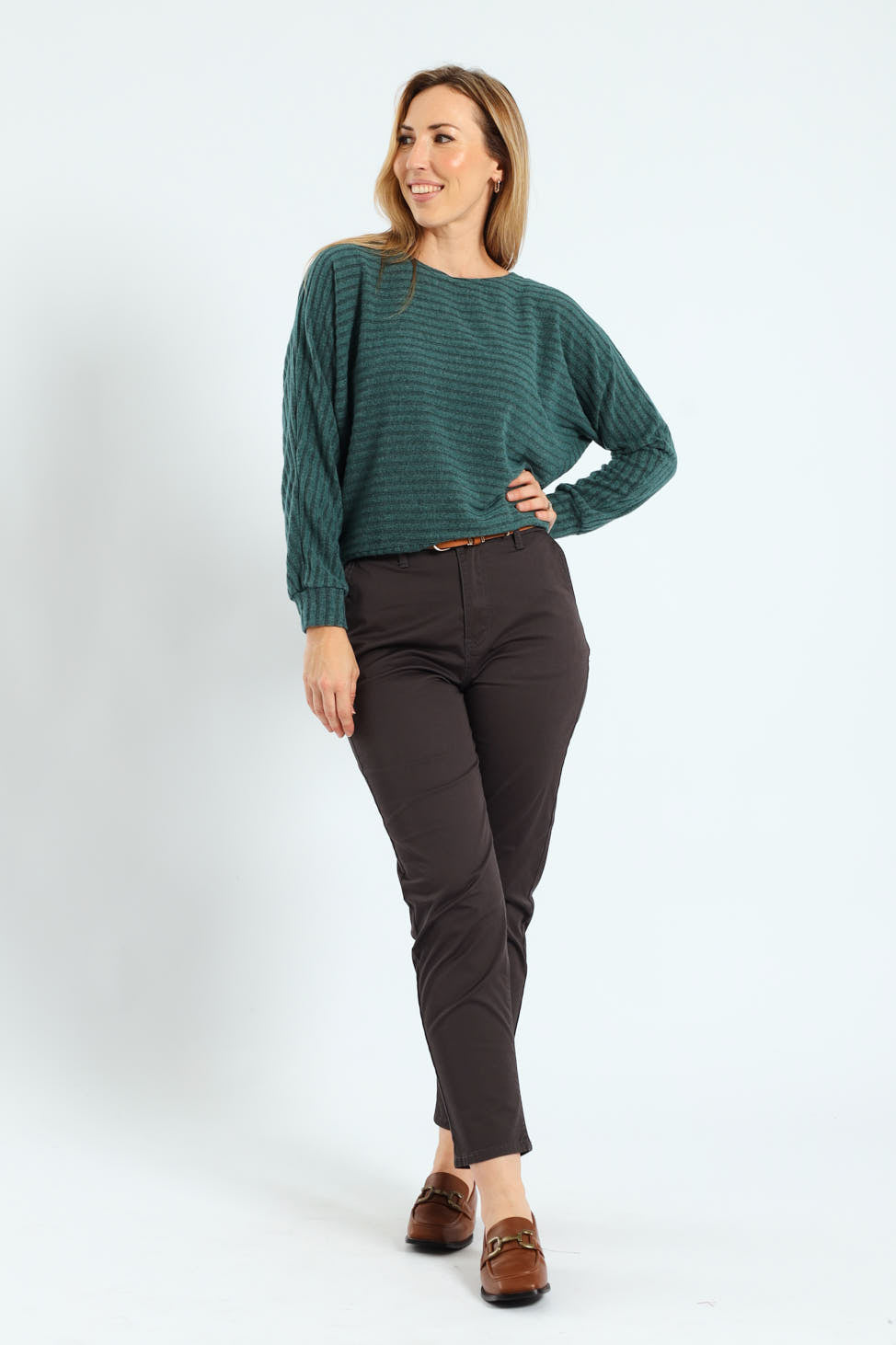 Chino Belted Sateen Pants - Dark Grey