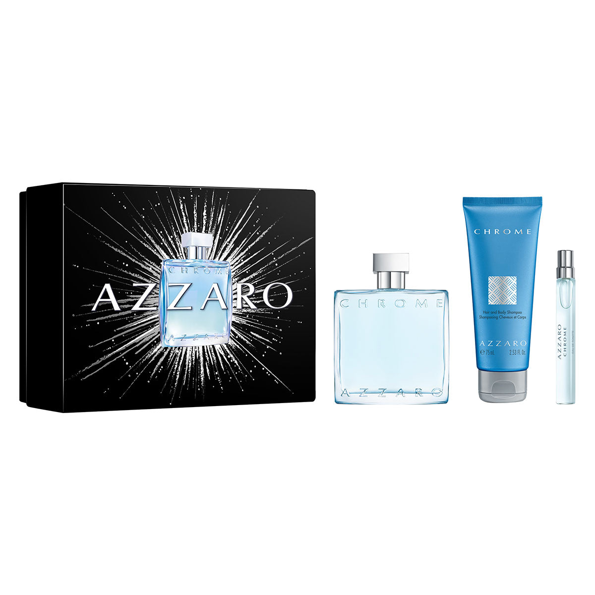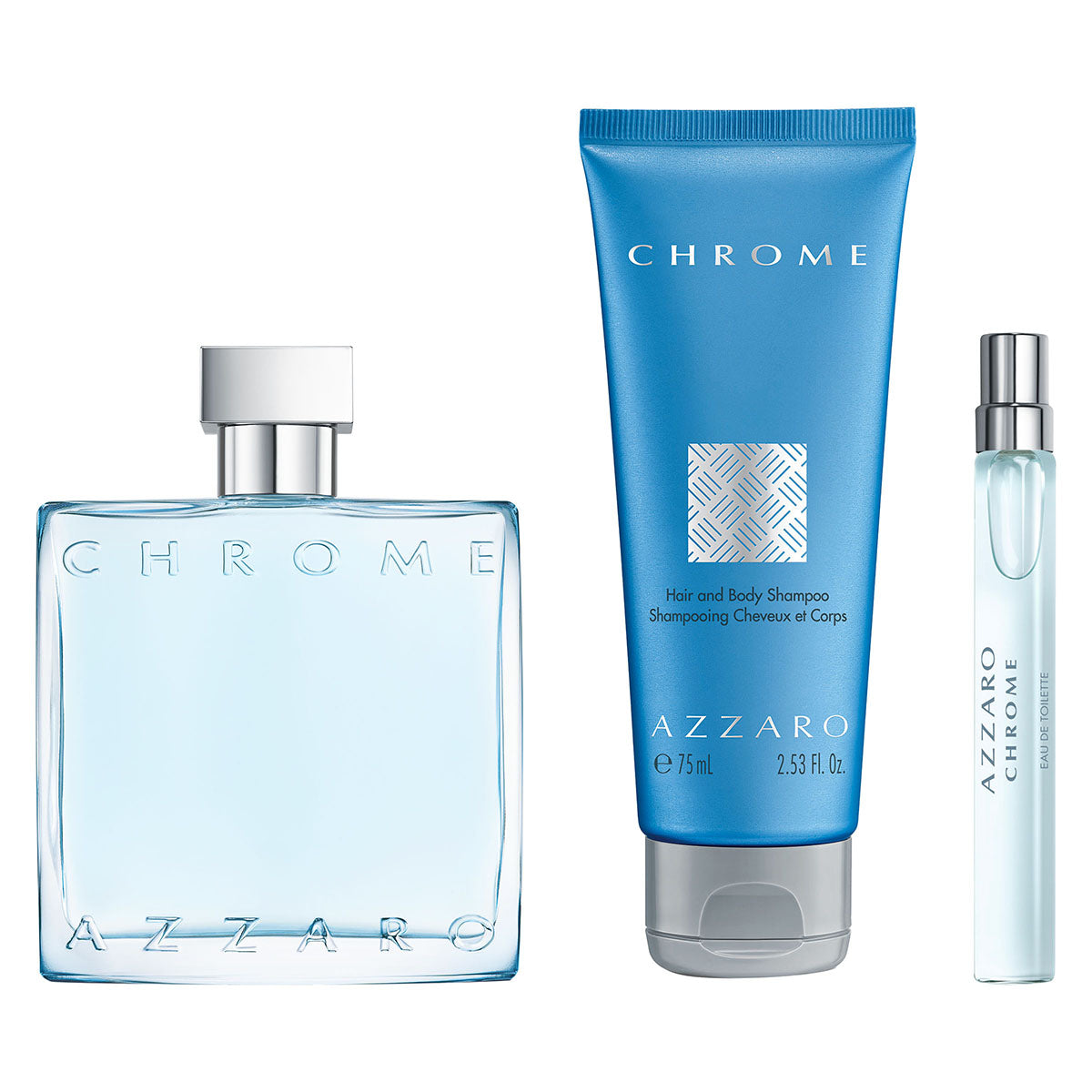 - Azzaro Chrome Eau de Toilette + 75ml Hair & Body Shampoo + 10ml Travel Spray