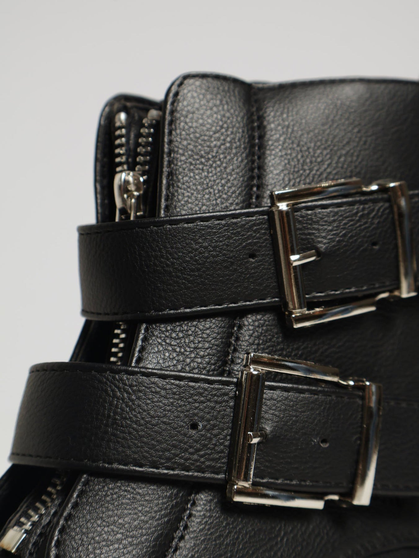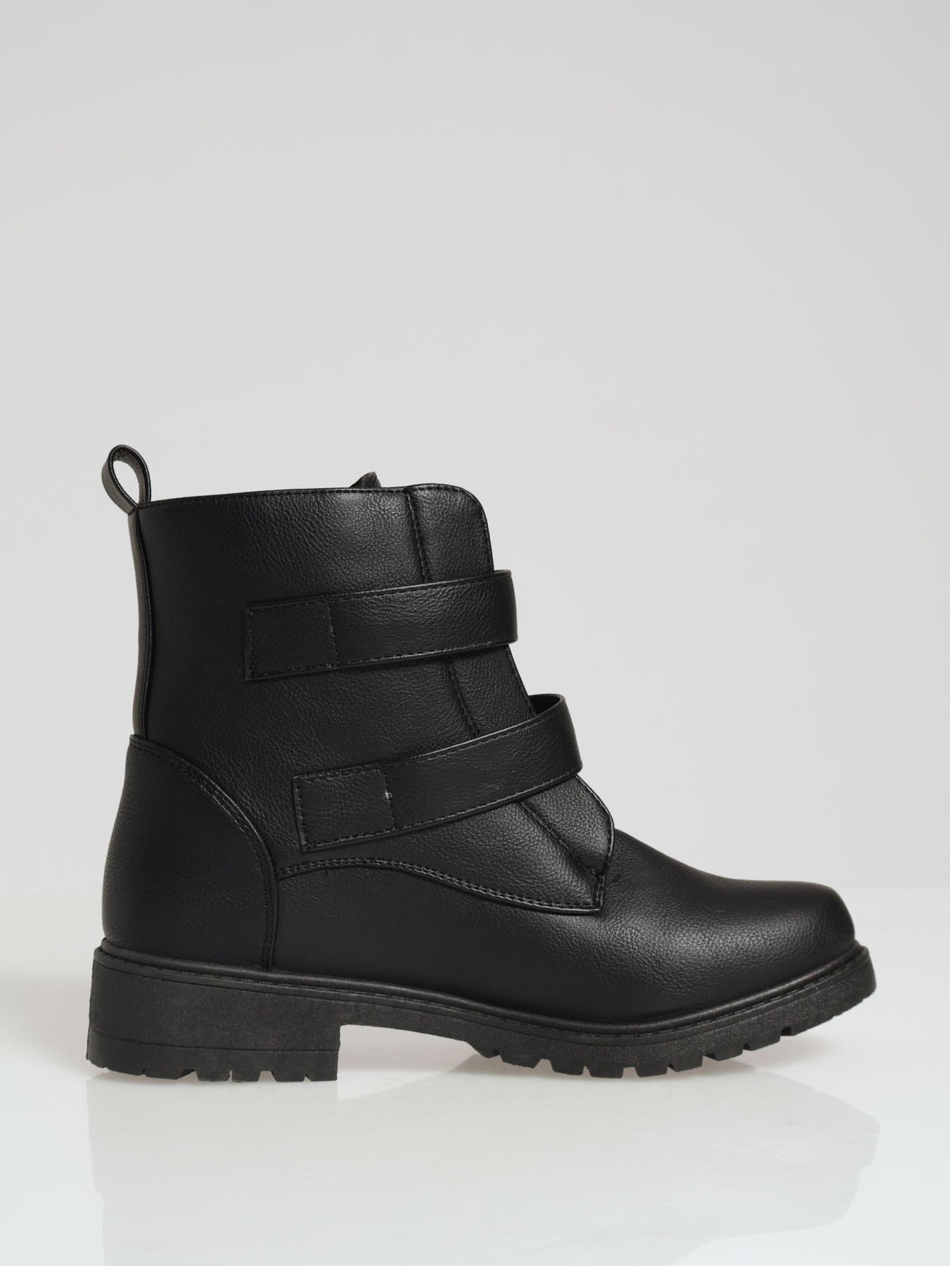 Chunky Front Zip & Buckle Ankle Boot - Black