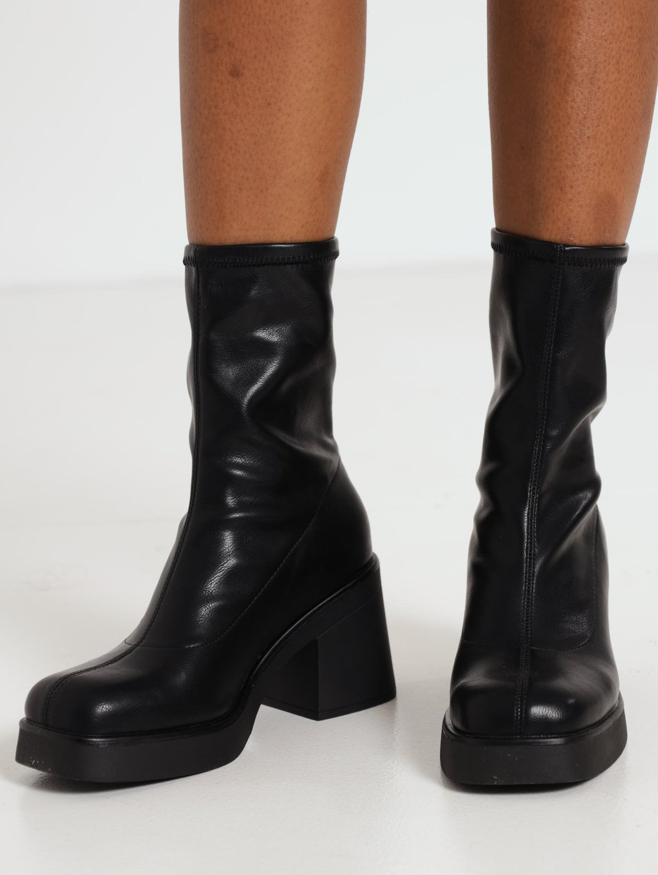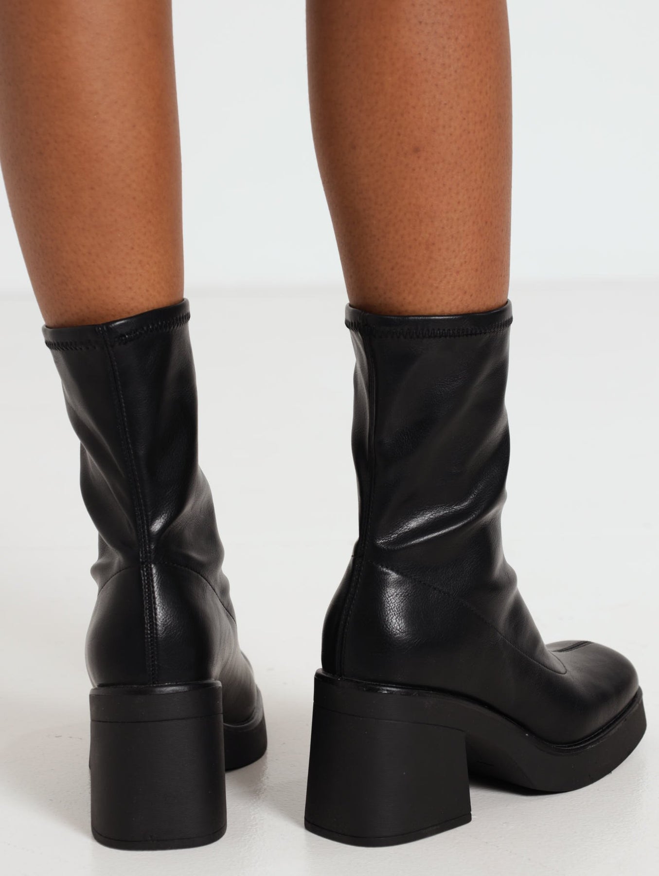 CIS Steffanie Platform Block Heel MID Calf Boot- Black