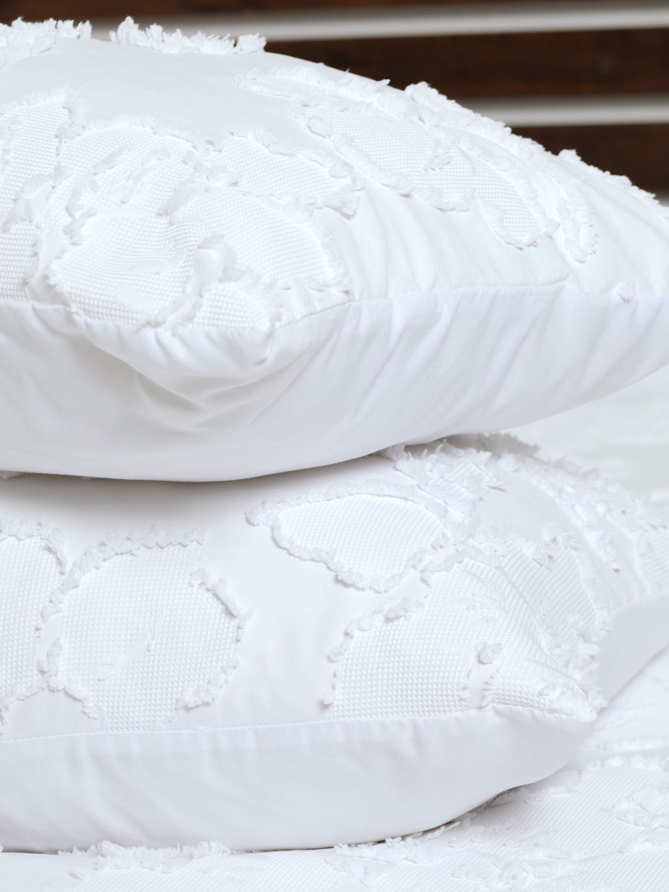 Elevate your bedroom with the Clipped Medallion Floral Duvet Cover Set in white. Expertly crafted, this set features a refined floral medallion pattern that adds subtle elegance and timeless charm. Its crisp white background enhances any décor style, providing a fresh and clean aesthetic. Designed for comfort and durability, this duvet cover set offers a sophisticated foundation for restful nights and stylish interiors.